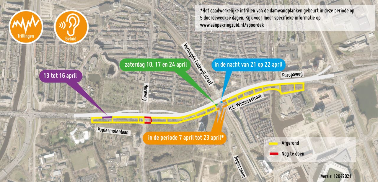 Deze week, van dinsdag 13 tot en met donderdag 15 april, worden er nieuwe damwandplanken ingetrild.