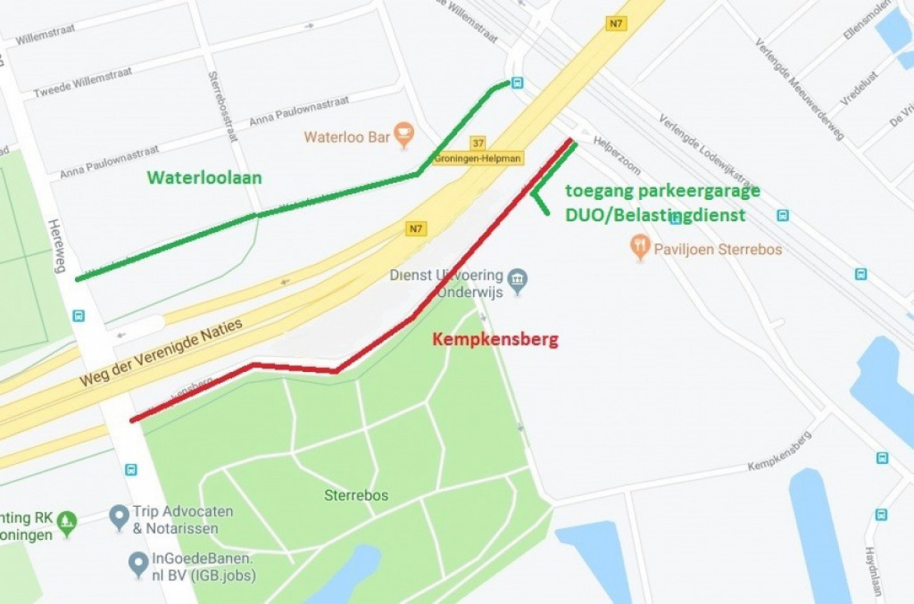 Op maandag 26 augustus gaat de Kempkensberg definitief dicht. De weg tussen de Hereweg en de Helperzoom langs DUO wordt afgesloten vanwege de bouw van de verdiepte ligging van de nieuwe ringweg. Het verkeer tussen de Hereweg en de Helperzoom kan vanaf maandag gebruik maken van de Waterloolaan, die vanaf dat moment tweerichtingsverkeer is. DUO en de Belastingdienst blijven bereikbaar vanaf de Helperzoom.