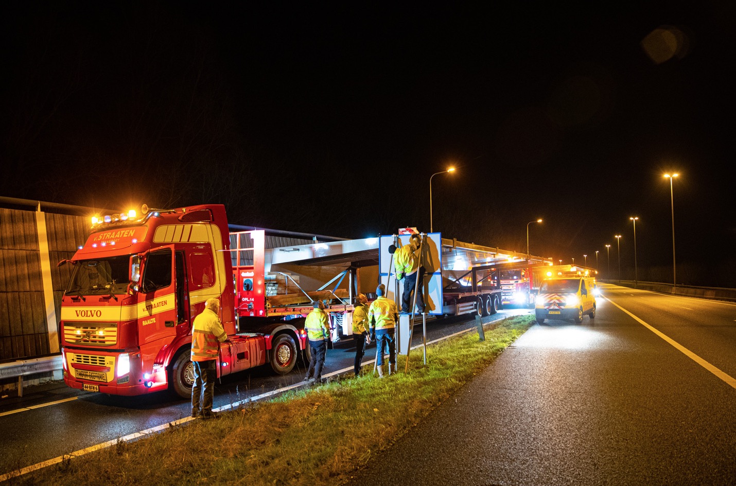 De treinen konden gewoon blijven rijden, het hijsen van de perronkapdelen gebeurde wanneer er geen treinen langskwamen.