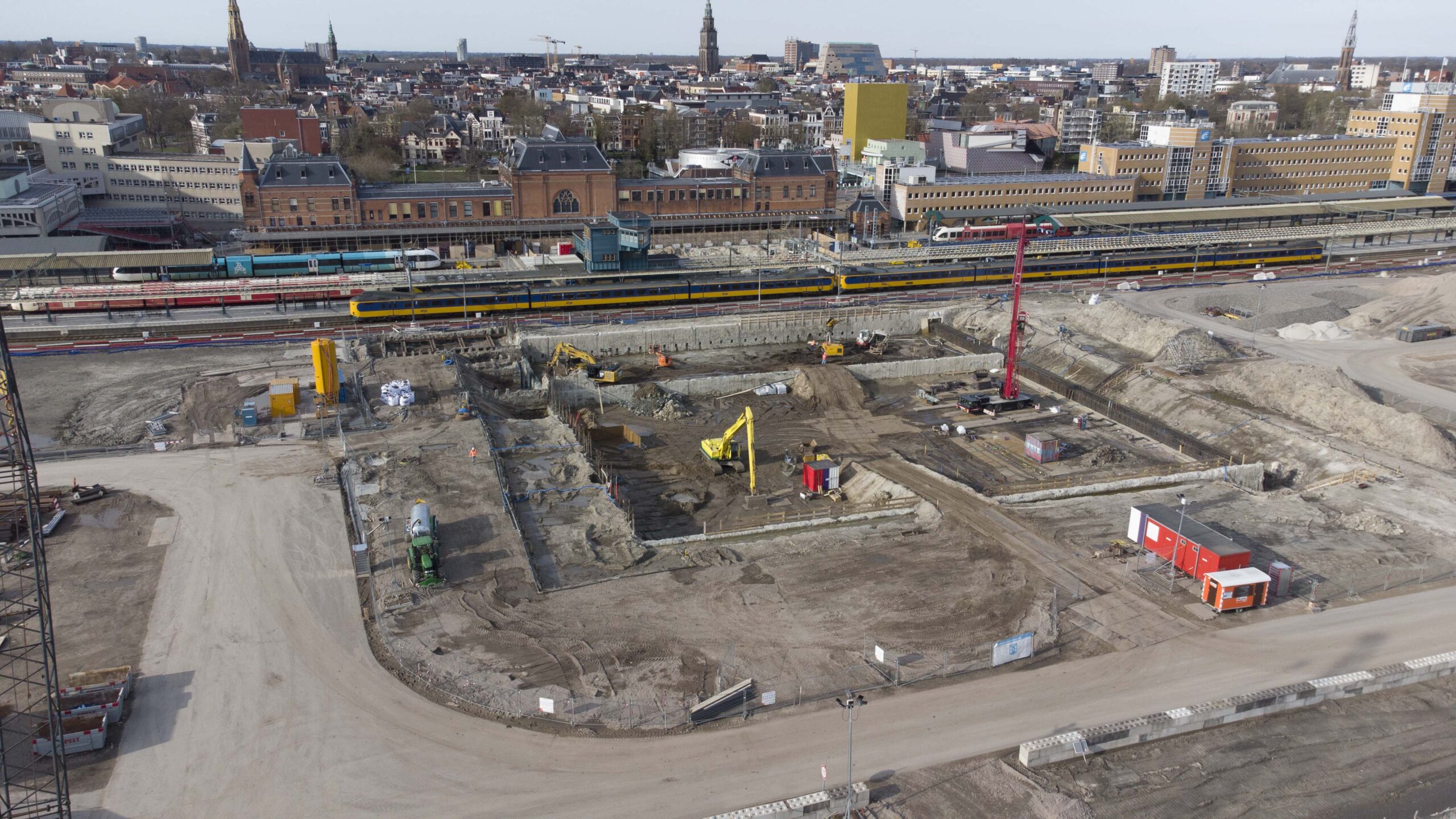 De wanden zitten in de grond en de kuip wordt nu ontgraven. Uiteindelijk moet de bouwkuip een diepte van 10.1 meter onder NAP (Normaal Amsterdams Peil) krijgen. Maar voordat het zover is, én er ook echt in de bouwkuip gelopen kan worden, moet er nog het nodige aan grond ontgraven en afgevoerd worden.