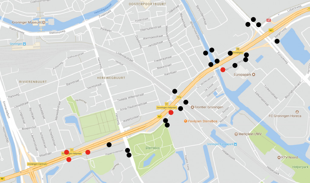 De rode stippen op de kaart geven aan waar meerdere telecomaanbieders aan de slag moeten. Op de plekken met een zwarte stip zijn minder vaak werkzaamheden. De werkzaamheden zelf duren niet zo lang, maar er kan wel veel tijd tussen de werkzaamheden zitten. Tussendoor blijven de geulen vaak open liggen. Ze worden dan afgezet met bouwhekken. Alle woningen blijven altijd bereikbaar.