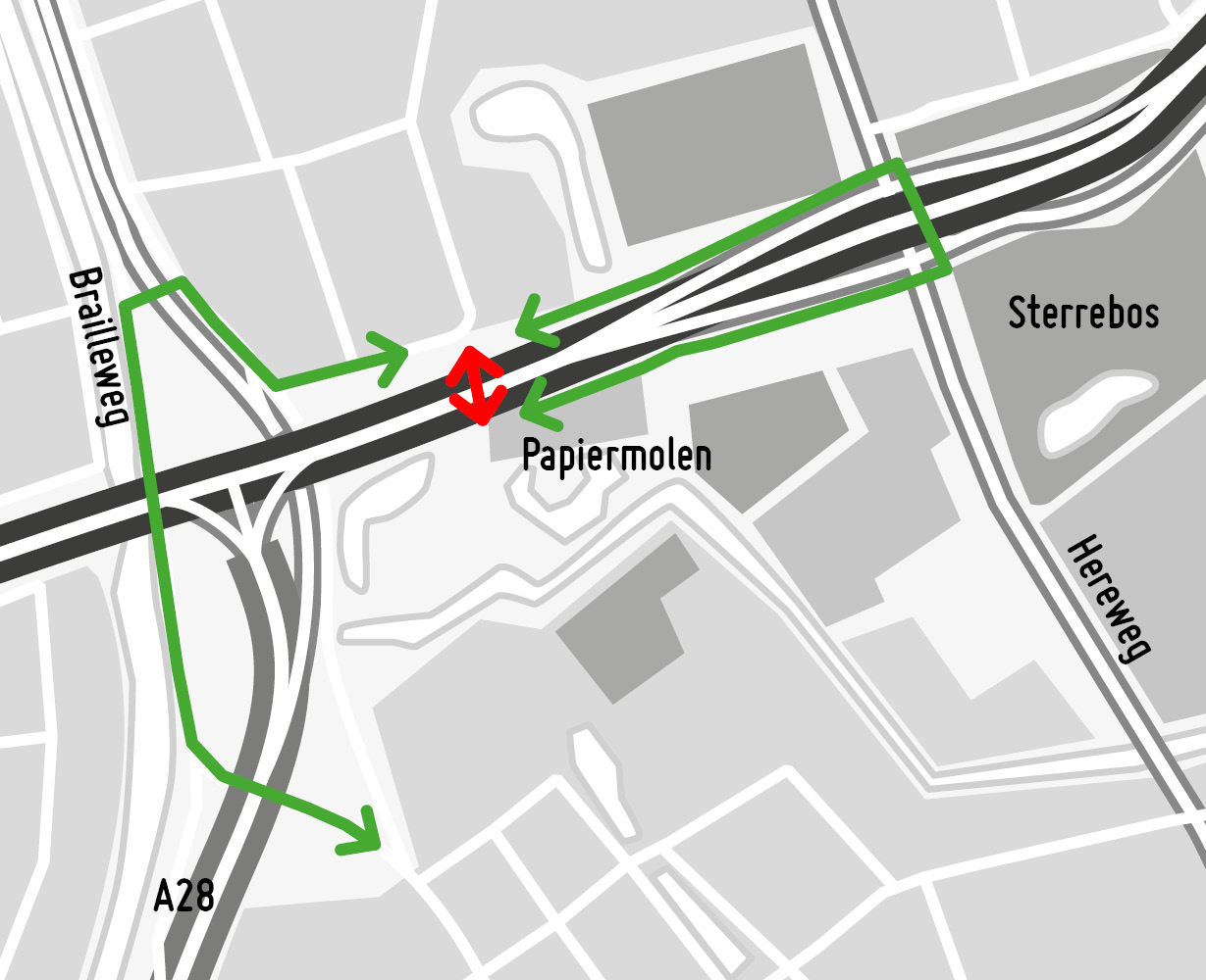De nieuwe Papiermolentunnel wordt twee keer zo langs als de bestaande tunnel. Deze gaat niet alleen onder de ringweg door, maar ook onder de nieuwe verbindingsweg die tussen de Hereweg en de Brailleweg komt. Aan de kant van de Rivierenbuurt worden de Maaslaan en de Merwedestraat iets verlaagd. Zo kunnen fietsers en voetgangers de gehele tunnel doorkijken, wat hun gevoel van veiligheid vergroot.
