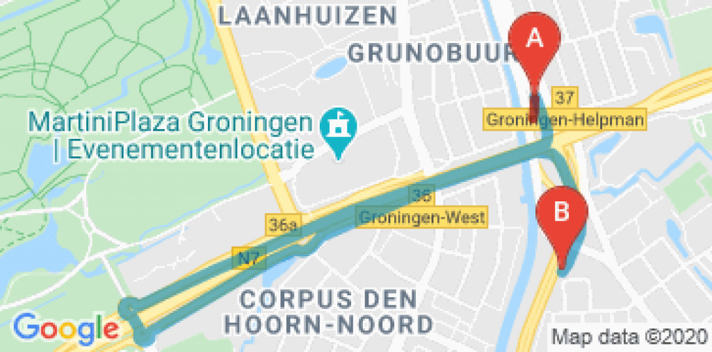 Het verkeer wordt omgeleid via de N7 en de rotondes bij de Laan Corpus den Hoorn om zo via het Julianaplein de A28 op te rijden.