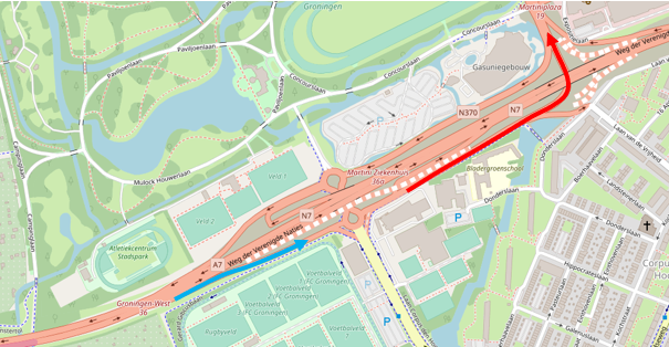 Verkeer naar de westelijke ringweg kan deze twee weekenden omrijden via de zuidelijke, oostelijke en noordelijke ringweg. Een andere optie is via Laan Corpus den Hoorn, de A28 en dan via het Julianaplein naar de westelijke ringweg. Kijk voor meer informatie bij Groningen Bereikbaar.