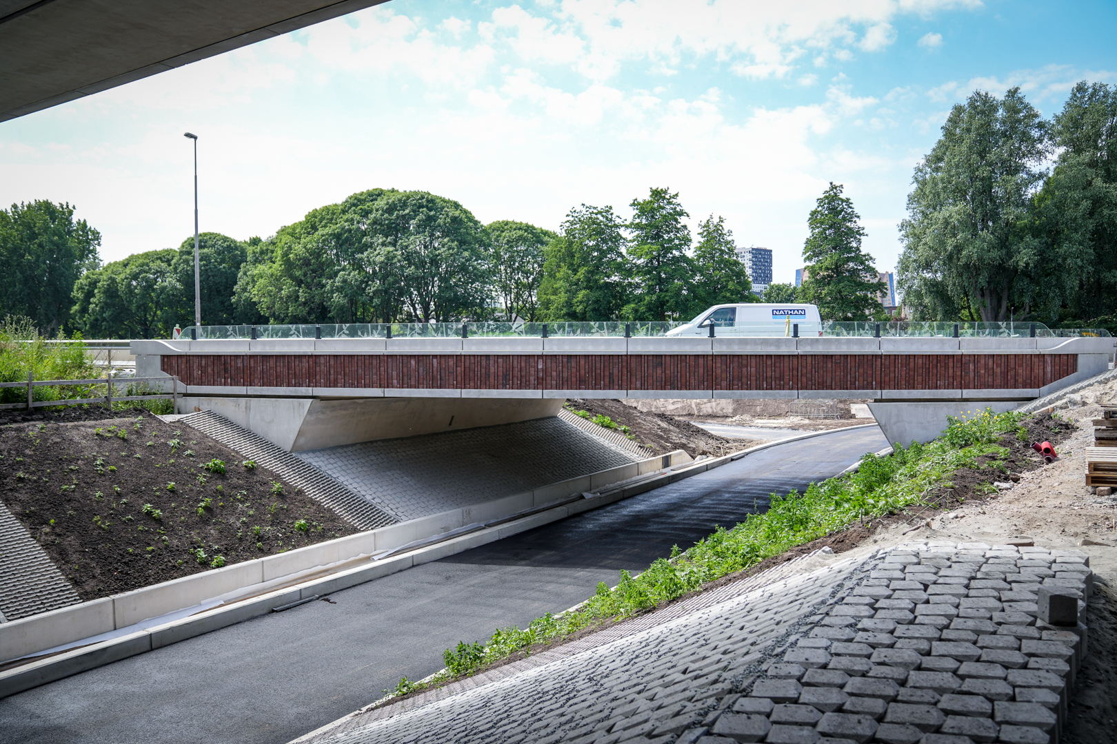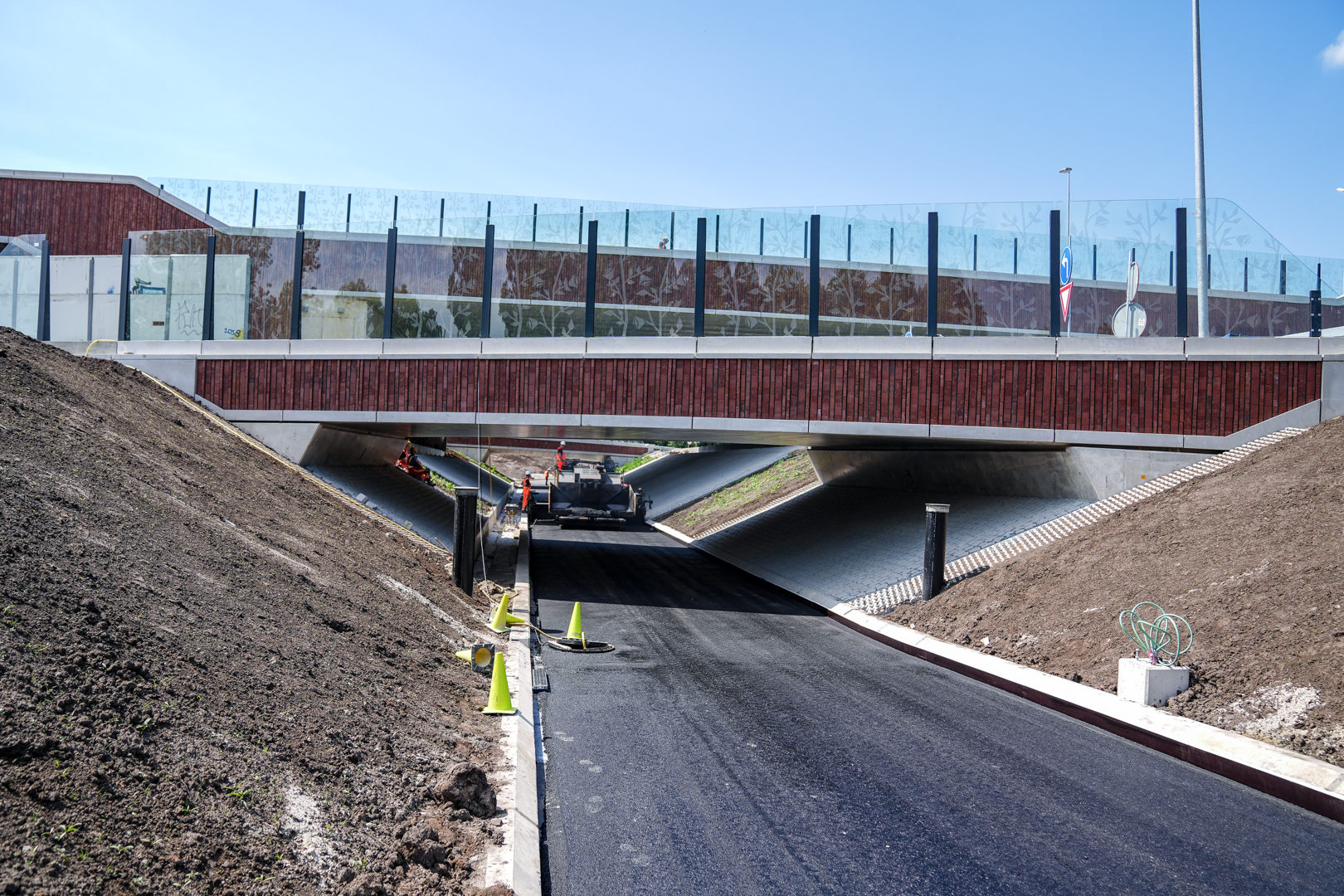 Op vrijdag 1 juli wordt het definitieve verdiepte fietspad bij de Brailleweg geopend. Op deze fietsroute ga je straks onder de A28 door en hoef je niet meer de nieuwe op- en afrit van de A28 over te steken. Onderstaande foto’s geven een beeld van de laatste voorbereidingen.