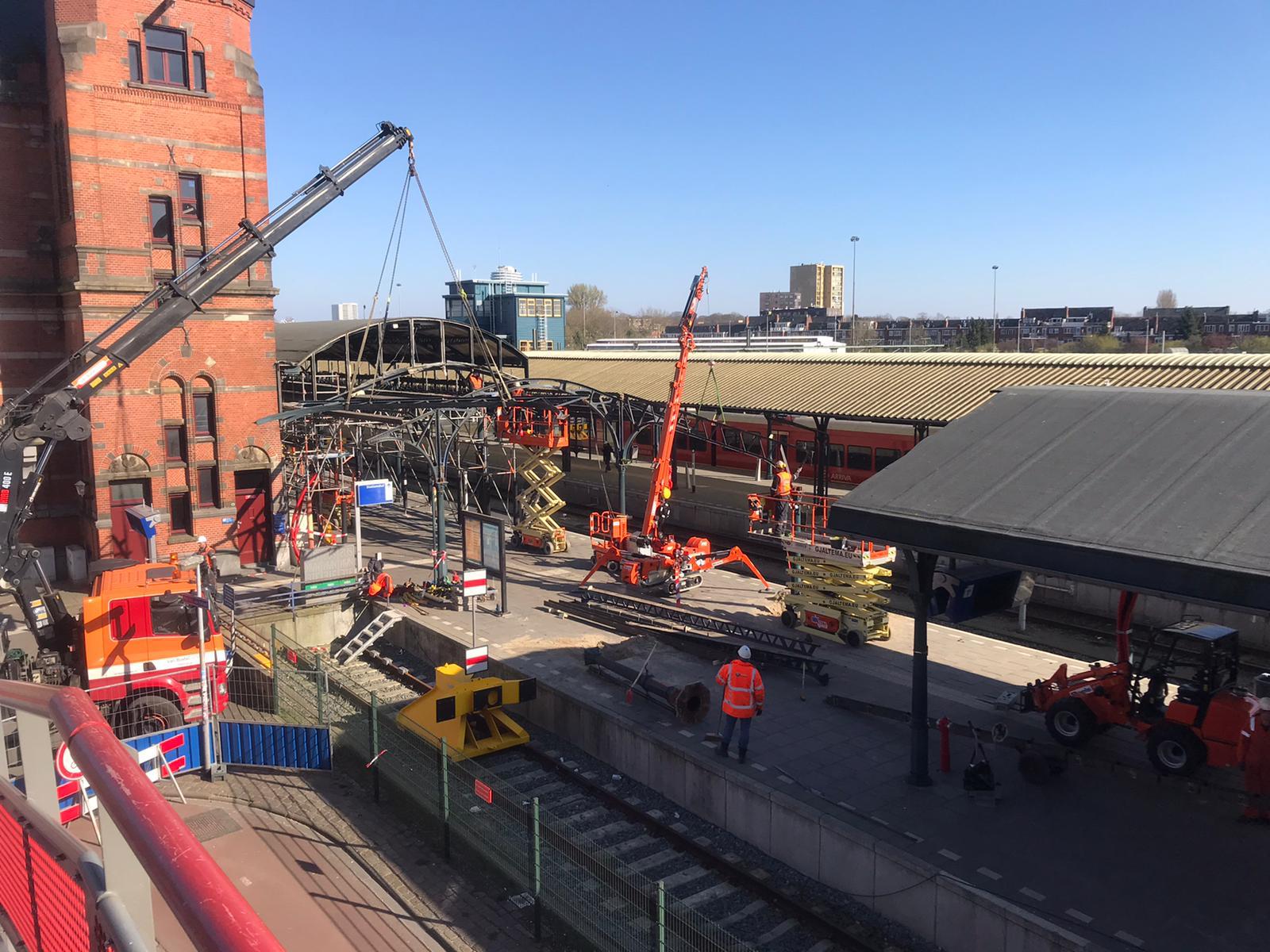 In april dit jaar startte aannemer Anton Groep met het verwijderen van de monumentale perronkappen op het station. Die zijn na 120 jaar in weer en wind staan toe aan restauratie. En er moest ruimte gemaakt worden voor de aanpak van station Groningen. “Omdat we het belangrijk vinden de historische kappen te behouden, zijn ze ingepast in het ontwerp van station Groningen en worden ze uiteindelijk weer teruggeplaatst”, aldus ProRail.