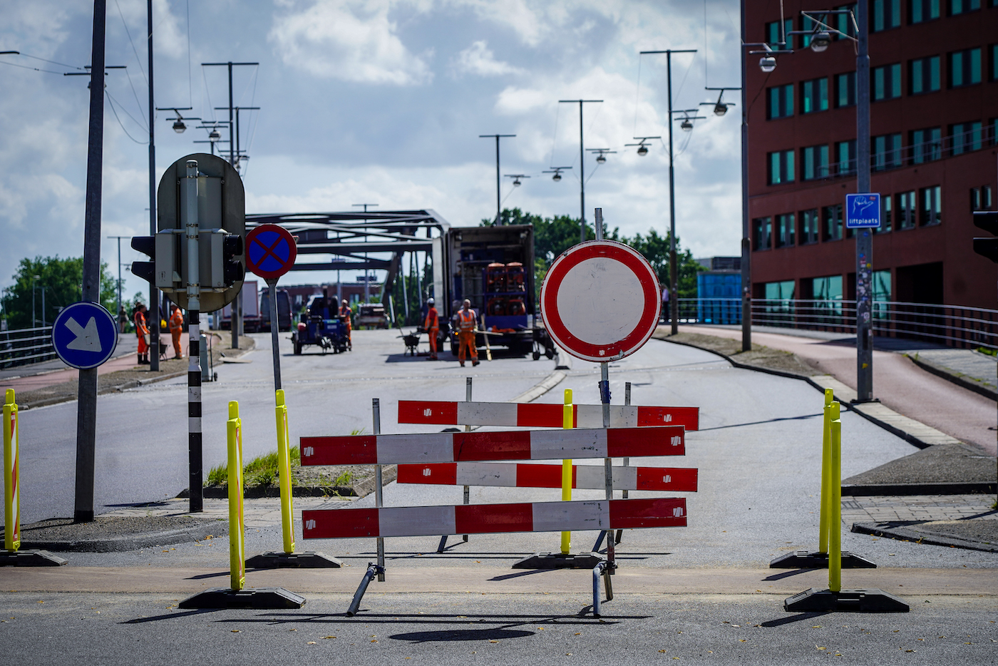 De werklui leggen zondag de laatste hand aan het viaduct. Zo worden er nog overgangsvoegen gelegd, lijnen getrokken en ook moeten de verkeerslichten bij het Emmaplein weer worden ingeregeld. Als al het materiaal is opgeruimd, kan de weg weer open.