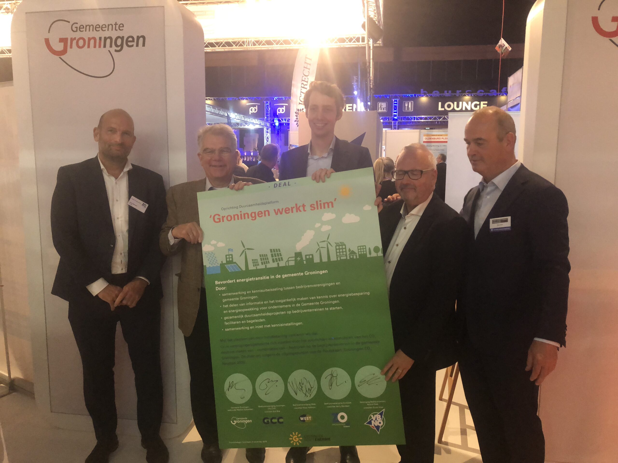 De overeenkomst werd ondertekend door de voorzitter Guus Vries (VBNO), Harrie Marissen (zuid-Oost), Eric Bos (Groningen City Club) en Klaas Holtman (Bedrijvenvereniging West). Namens de gemeente Groningen tekende wethouder Gijsbertsen.