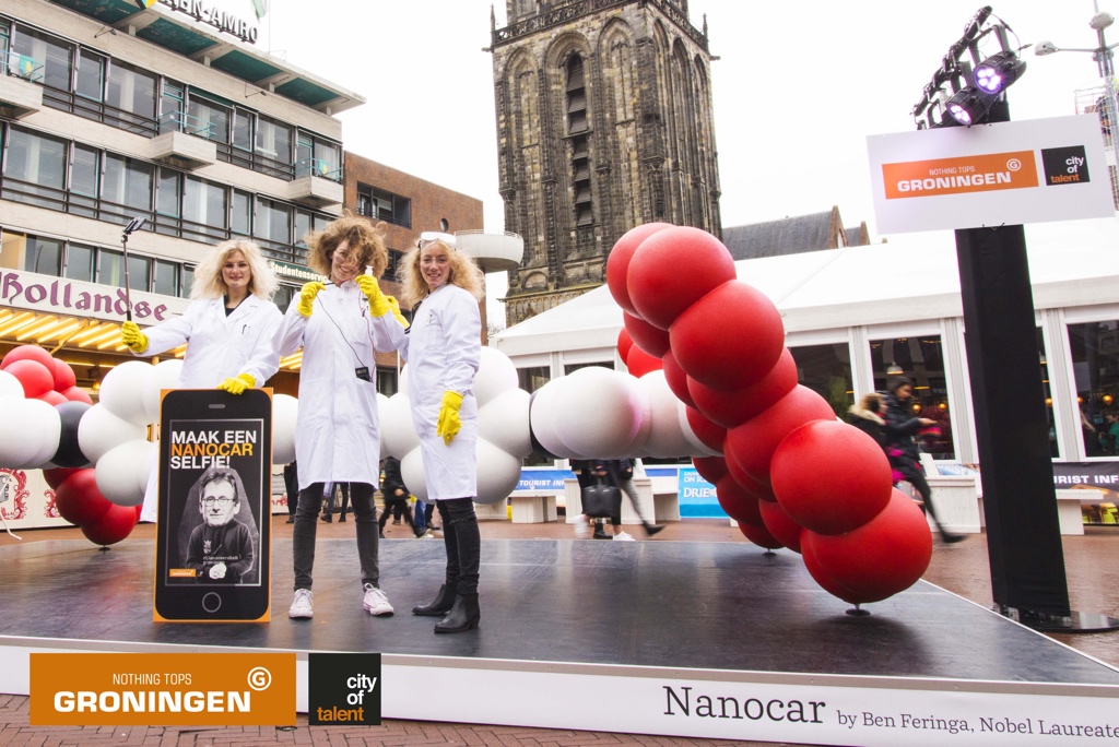De levensgrote nanocar, de projectie op de Martinitoren, de ’explanimation’ en de selfie-actie zijn onderdeel van de ‘Groningen, City of Talent’-campagne van het Akkoord van Groningen. Met deze campagne biedt het Akkoord Groningse talenten een platform waarop ze hun talent kunnen delen met de rest van de wereld.