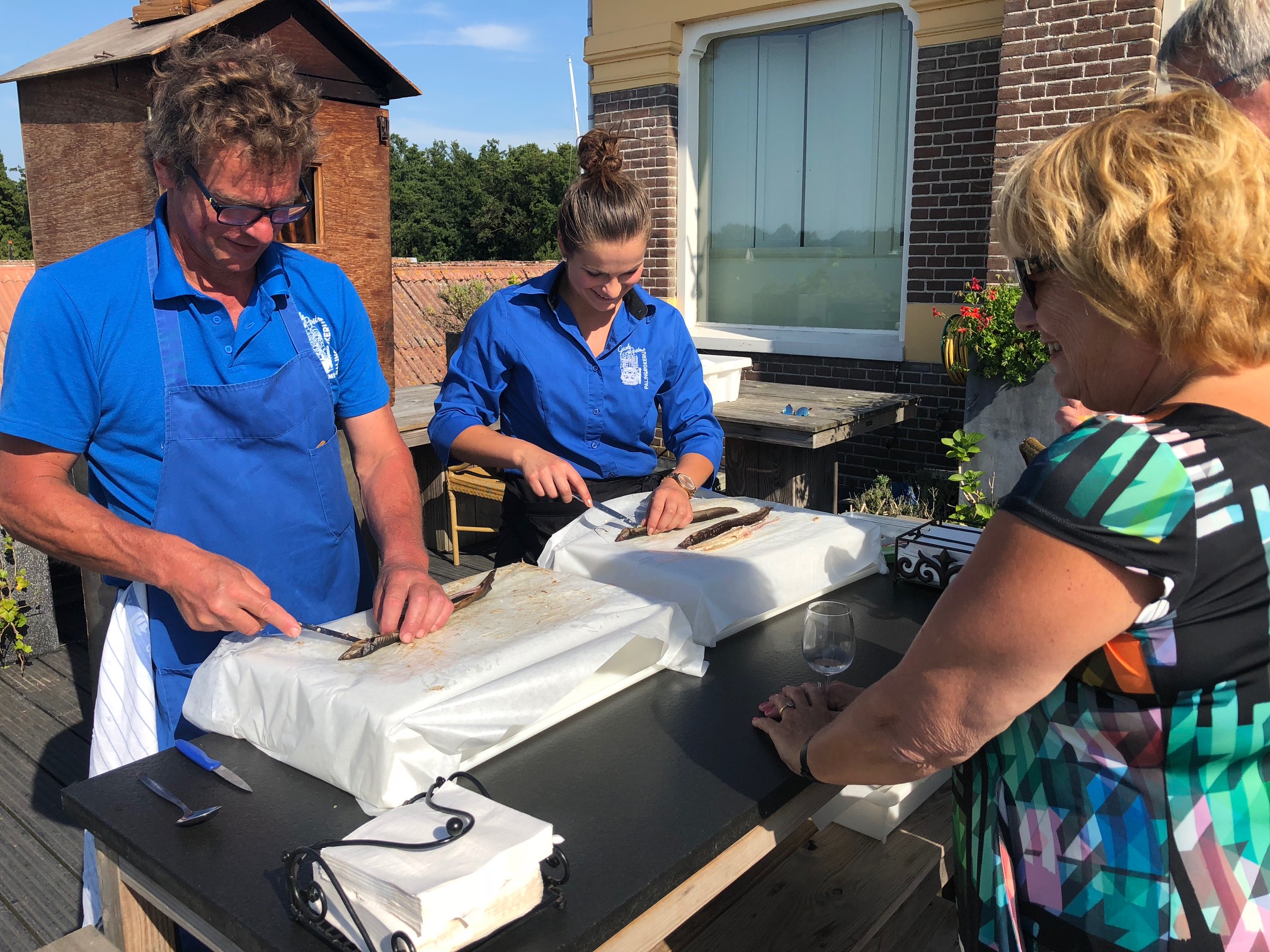 Belangrijke trekpleister deze middag was de paling van de Groningse palingvisser Gaele Postma uit Zoutkamp. Hij vangt paling in het Reitdiep, die hij zelf rookt en ter plekke samen met ene college schoonmaakt en serveert.