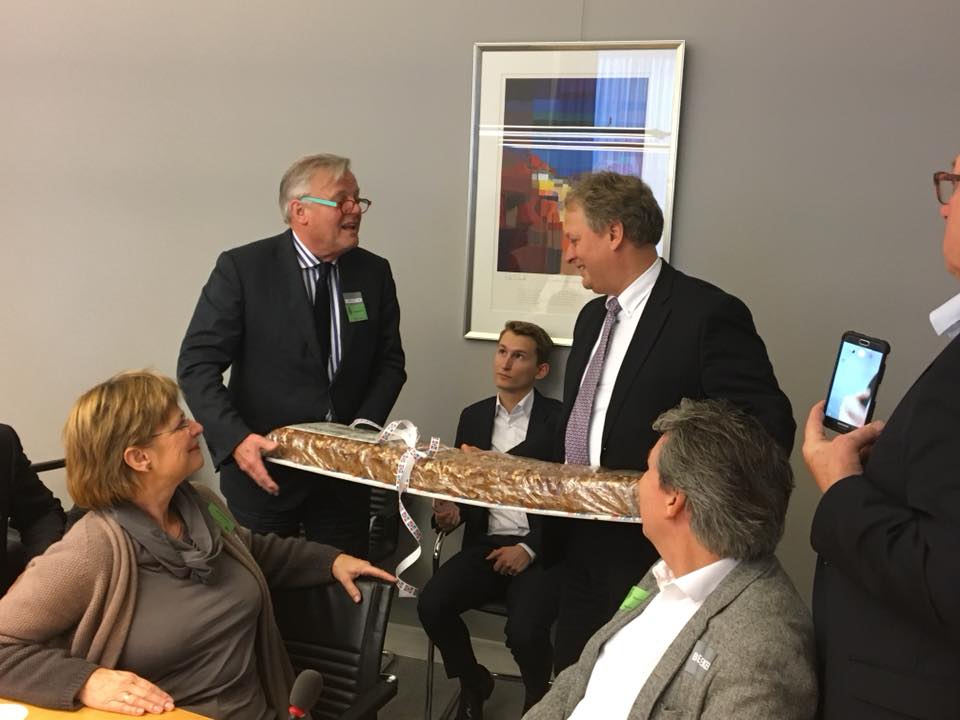 De Commercieele Club had een enorme koek van Knol meegenomen. Die zou worden aangeboden aan Erik Ziengs, die de hele ochtend voor de Groningers had gereserveerd. Maar niemand had er rekening mee gehouden dat de koek niet zo maar mee naar binnen mocht. Hij moest net als alle tassen en jassen eerst door het detectiepoortje. Maar daarin bleek niets verborgen te zijn, en vervolgens kon de koek naar binnen worden gesleept en kon Harm Post de koek overhandigen aan het Kamerlid Ziengs.