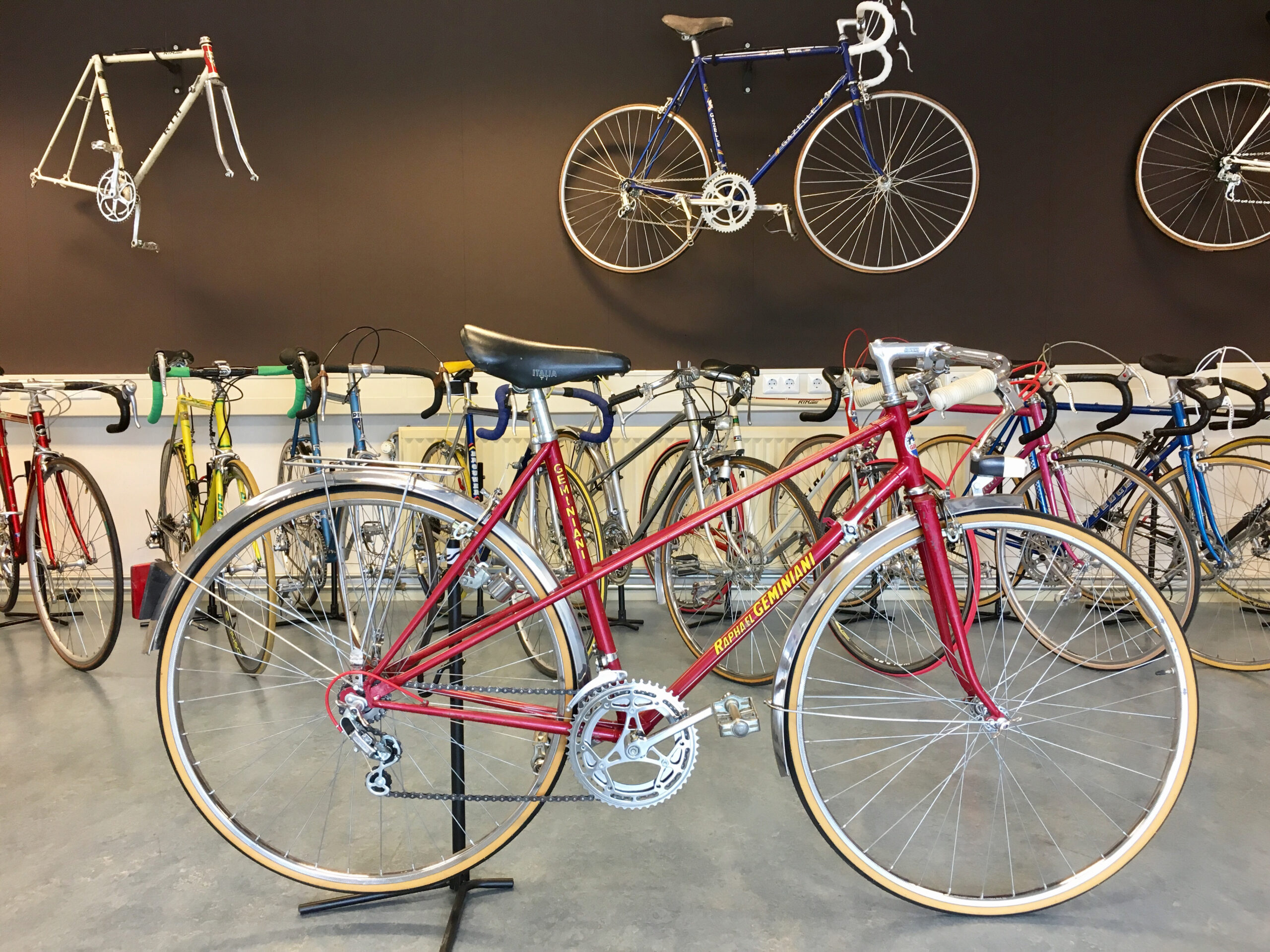 Het pand aan de Peizerweg is een walhalla voor liefhebbers van vintage racefietsen. Niet alleen staan er de pronkstukken uit de privécollectie van Erik, ook staan er veel exemplaren te wachten op een nieuwe eigenaar. Niet dat dat lang duurt: de fietsen gaan als warme broodjes. “En dat terwijl het echte fietsseizoen nog moet beginnen.”