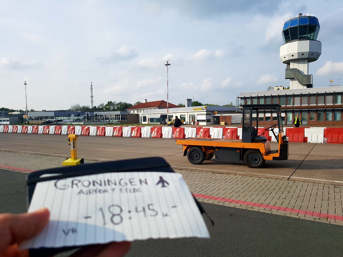 ‘Zo sta je op 't Empire State Building in NYC, en zo sta je 19u later weer op @AirportEelde in Groningen. Kopenhagen vrijdag 14.50 uur. Newark 23.30’, aldus @frenkvolt.