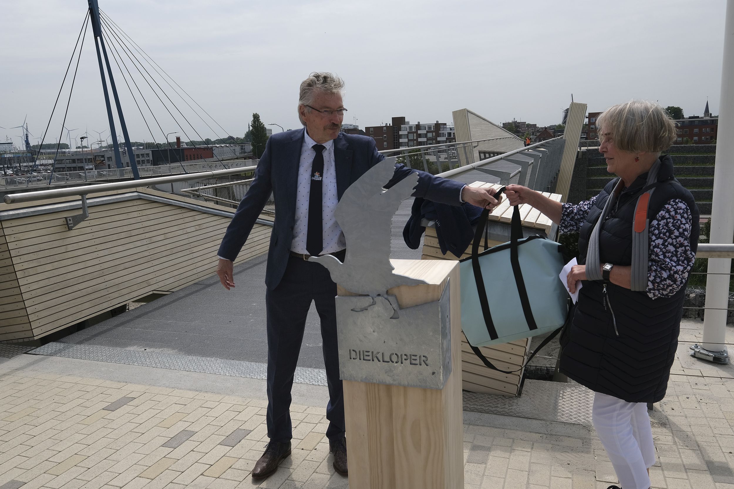 Het onthullen van de naam van de nieuwe brug tussen het stadscentrum en de boulevard markeerde het einde van het project Marconi Buitendijks. Jan Menninga, wethouder van de gemeente Eemsdelta en Janny Volmer, inwoner en bedenker van de naam maakten de naam vrijdag 25 juni 2021 bekend: 'De Diekloper'. Henk Staghouwer, gedeputeerde van de provincie Groningen en Gerben Huisman, directeur van het Waddenfonds waren hierbij aanwezig.
