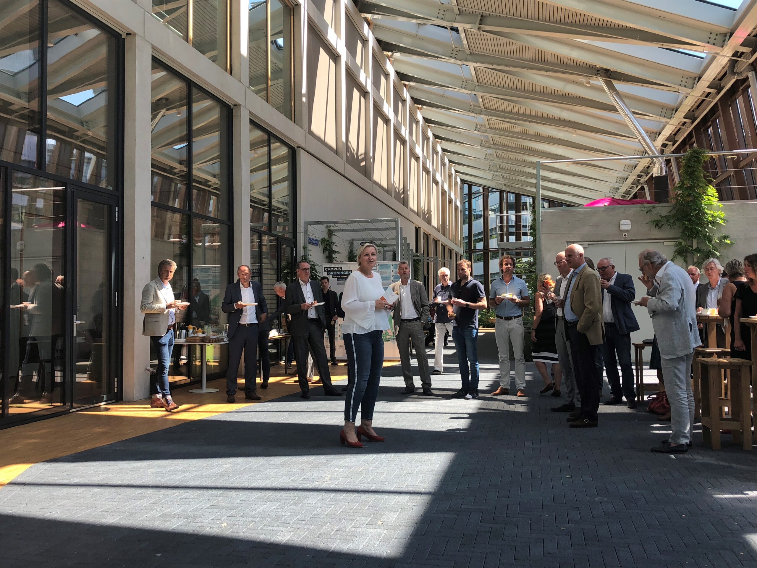 Groningse ondernemers aangesloten bij netwerkvereniging Commercieele Club Groningen weten sinds maandagmiddag álles over energietransitie. Nou ja: niet alles, maar wel veel, want ze brachten tijdens de lunch een oriëntatiebezoek aan het gebouw van de New Energy Coalition, op het terrein van de Zernike Campus Groningen. Dat gebouw is de Energy Academy Building, momenteel het meest duurzame onderwijsgebouw van Nederland.