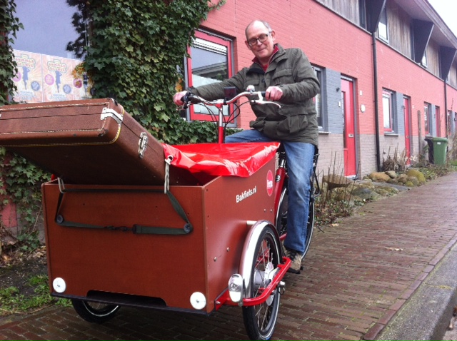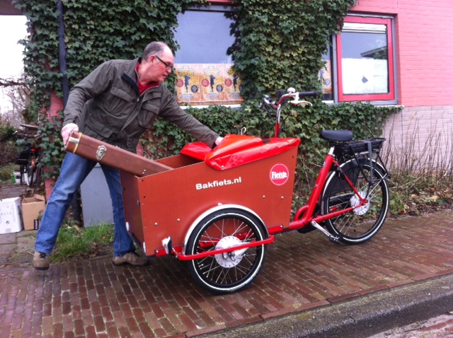 ‘Ik heb sinds een maand een elektrische bakfiets en hij bevalt me geweldig! Ik heb geen auto, maar wel moet ik af en toe spulletjes vervoeren. Voortaan hoef ik minder vaak iemand te vragen me te helpen, en kan ik het nu zelf vervoeren. Ook gebruik ik hem soms voor vervoer van spullen tot ver in de provincie, en ook dat gaat uitstekend. Het is dan wel genieten tijdens zo’n lange rit!’, zegt Van Dijk.
