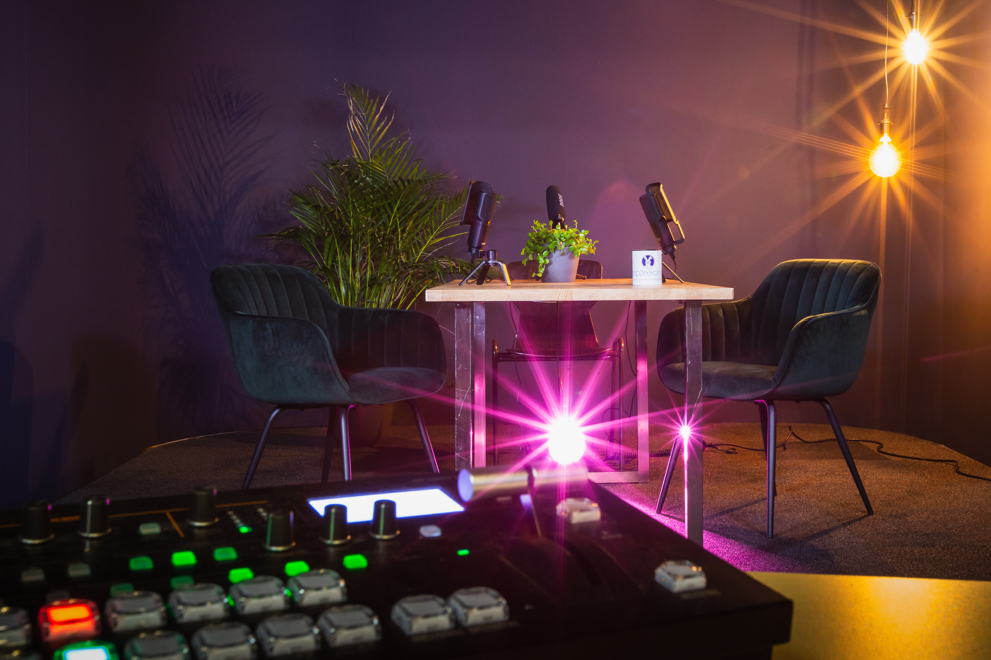 Noordhoek en Keuning: “De twee nieuwe studio’s die we hebben gerealiseerd sluiten hier perfect op aan. Deze zijn zeer geschikt voor het houden van live uitzendingen of het goed en snel opnemen van bijvoorbeeld instructievideo’s of mooie podcasts. We kunnen in deze studio’s razendsnel de setting realiseren die nodig is. Alle high-tech audio- en videofaciliteiten zijn aanwezig waarbij de studio’s akoestisch en esthetisch aan hoge normen voldoen. Dat zorgt voor aansprekende professionele producties.”