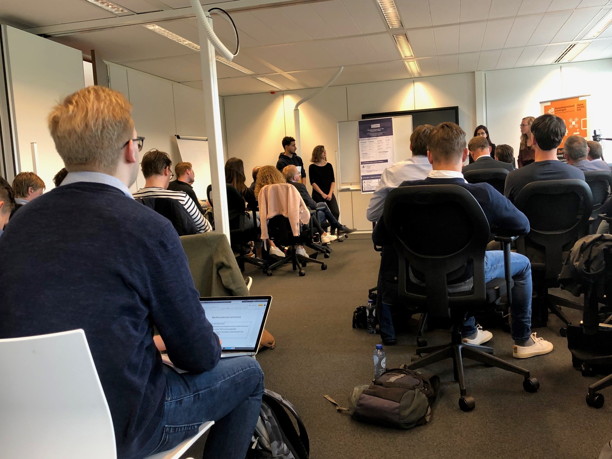 De studenten van het eerste jaar hadden de opdracht om met een waardepropositie te komen waarmee de bedrijven een nieuw product of dienst de markt kunnen betreden. De deelnemende bedrijven Young Tactical Analyst, Het Hamelhuys, Groene Koolen en Dronewerkers waren onder de indruk van de opgeleverde presentaties en adviezen die dit jaar van een bijzonder goed niveau waren.