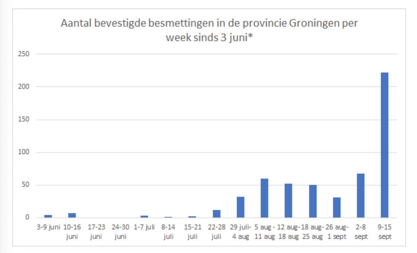 Volgens de GGD is er inderdaad een forse stijging te zien in het aantal besmettingen. In meer dan de helft (55 procent) van de gevallen ging het om mensen van tussen de 18 en 24 jaar oud. Elf personen waren jonger dan 18 jaar, waarvan vier jonger dan twaalf.