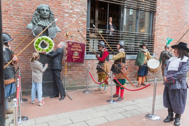 Zaterdag werd Von Rabenhaupt herdacht bij zijn borstbeeld in de Waagstraat. Burgemeester Koen Schuiling en kinderburgemeester Floor hingen een bloemenkrans bij het beeld.