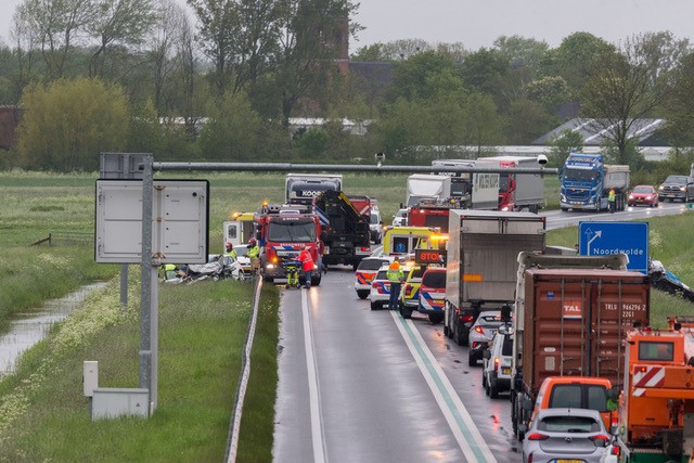 De weg is op dit moment nog afgesloten voor onderzoek en bergingswerkzaamheden, zo meldt de politie.