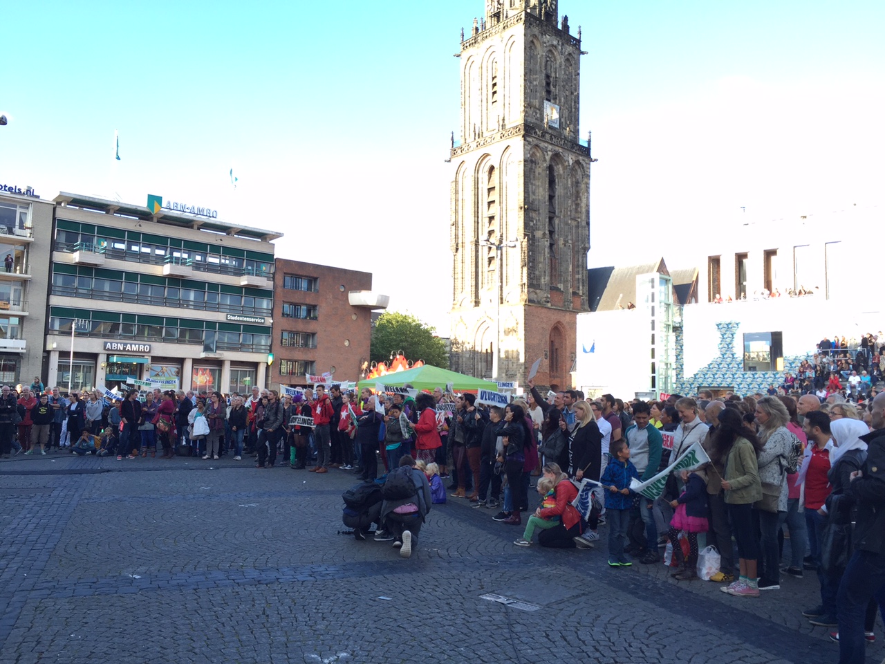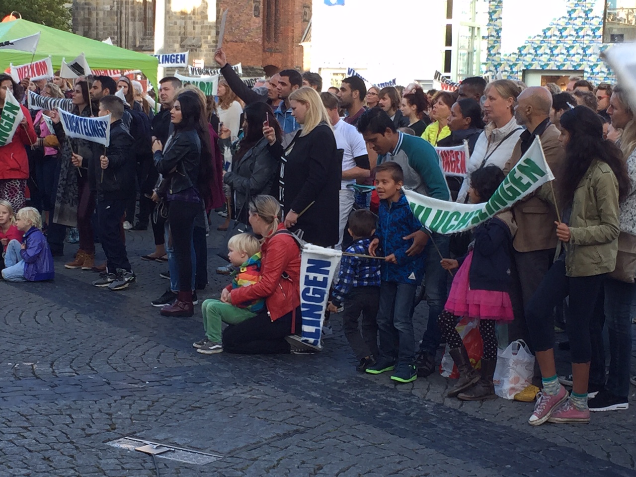 "Sinds de Tweede Wereldoorlog waren nog nooit zoveel mensen thuisloos", sprak Ola Mafalaani. "En wij bouwen grenzen om te buiten te houden? Ik kan niet aanzien hoe militairen met hun knuppels hele familie bewerken. Uw wel? We zijn hier om duidelijk te maken dat we een hart hebben! We beschermen het recht om te leven en we moeten doen wat in onze macht ligt."