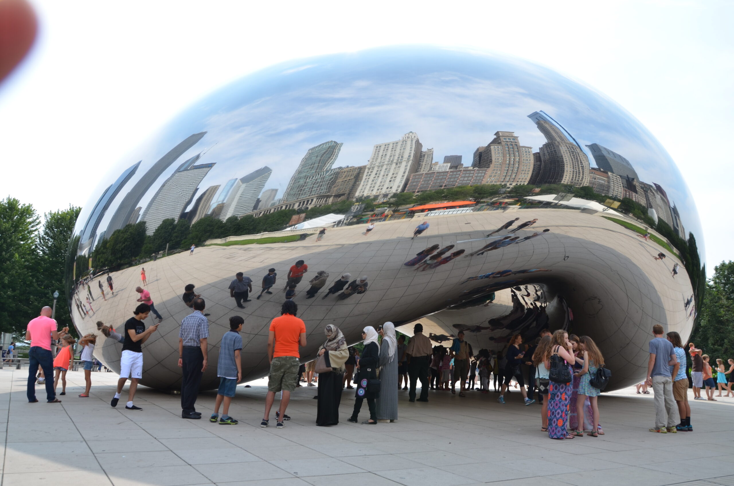 Neem de The Bean in Chicago, die officieel de naam Cloud Gate draagt. Dit is een absolute blikvanger in het Millennium Park. Het glimmende object is door kunstenaar Anish Kapoor gemaakt van roestvrij stalen platen in de vorm van vloeibaar kwik. Waar je ook staat, je ziet de skyline in het vervormde en gedraaide beeld van The Bean. En jezelf! Niet voor niets drommen dagelijks duizenden mensen samen bij Cloud Gate om zichzelf op foto te vereeuwigen met een spraakmakend kunstwerk én de skyline van Chicago. Ik heb er zelf afgelopen zomer ook zeker twee keer een half uur naar staan kijken.