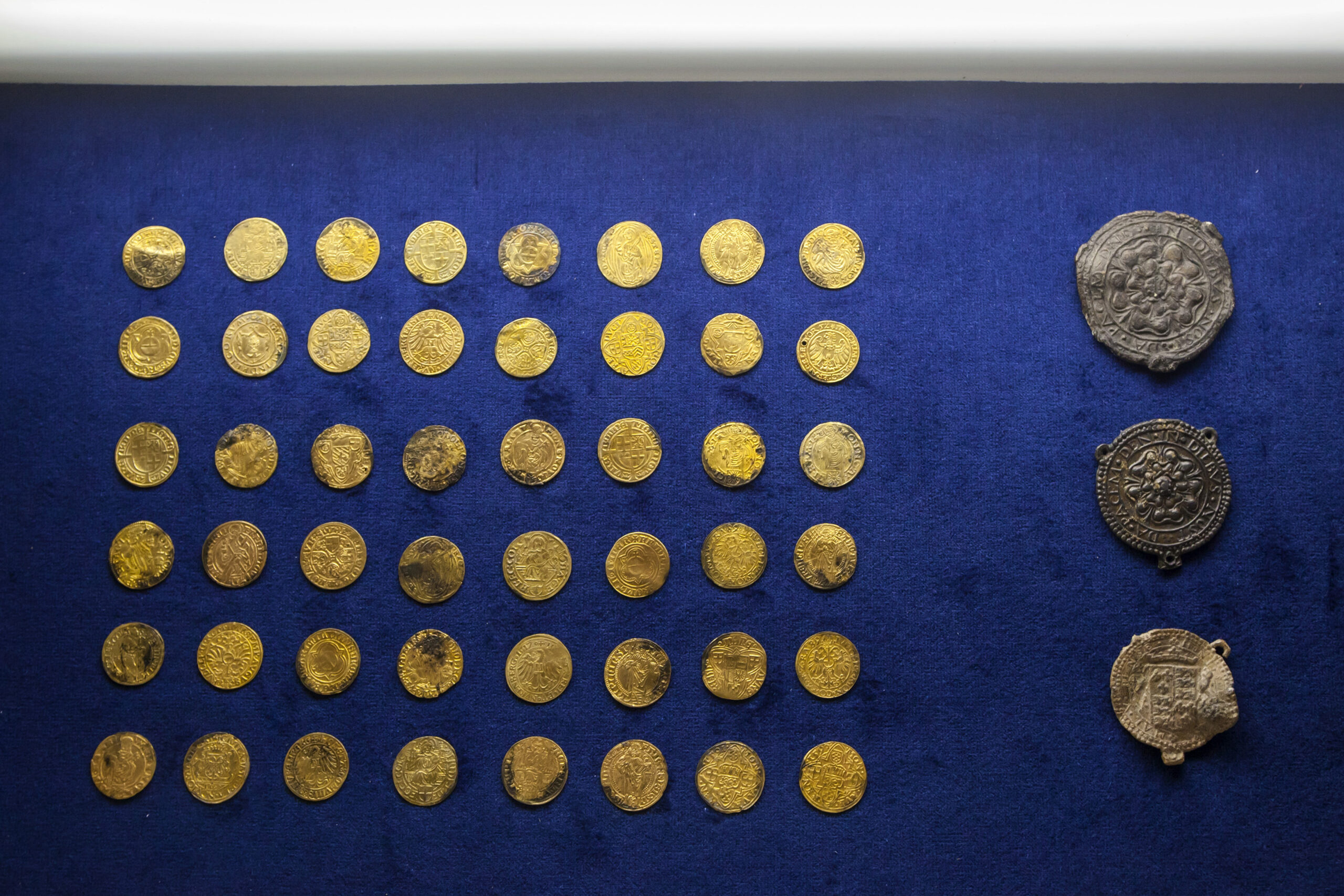 De gemeente Loppersum heeft foto's vrij gegeven van de gouden munten die zijn gevonden. ( Zie ons vorige bericht met alle achtergrond informatie). De munten vormen een schat van goudguldens, stammend uit de 16e eeuw en afkomstig uit het Heilige Roomse Rijk. Nog niet alle munten zijn exact gedateerd, maar op dit moment lijkt de oudste munt afkomstig uit 1501 en de jongste uit 1592. De foto's, hierboven en hieronder, zijn gemaakt door Jan Pitt van Pitt Fotografie, Stedum.