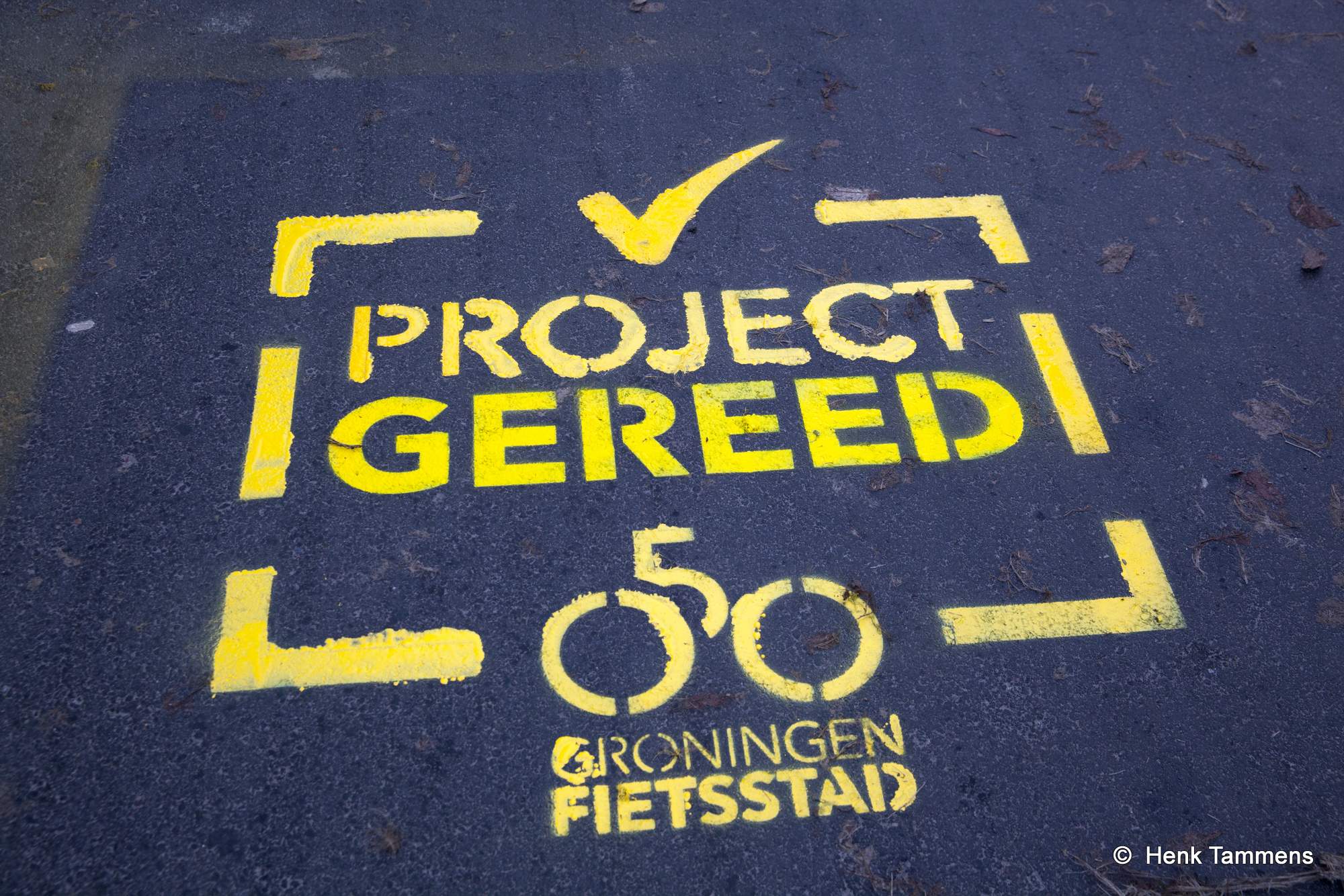 Paul de Rook opende het pad door een afbeelding op de weg te spuiten. Hij deed dat met de Fietsersbond, wijkbewoners, volkstuinencomplex Vinkhuizen en aannemer Oosterhof Holman.