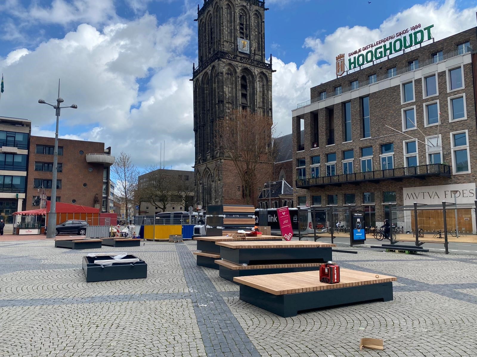 Het college van B&W had toegezegd om meer openbare zitplaatsen in de binnenstad te realiseren. Op de grote banken is plaats voor twintig personen. Er wordt straks ook nog ‘groen’ toegevoegd. Daarmee is eerder ook al eens geëxperimenteerd. De banken blijven staan totdat de Grote Markt helemaal opnieuw is ingericht. In de definitieve situatie verdwijnen de bussen bijvoorbeeld van de Grote Markt.