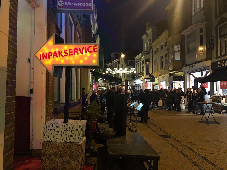 Het Inpakhuis is voor bezoekers van de Zwanestraat niet te missen. Op het pand van de studentenvereniging Mesacosa op nummer 35 hangt een enorm cadeau. Wie vervolgens het pand in loopt wordt er hartelijk ontvangen en kan zijn cadeaus laten inpakken.