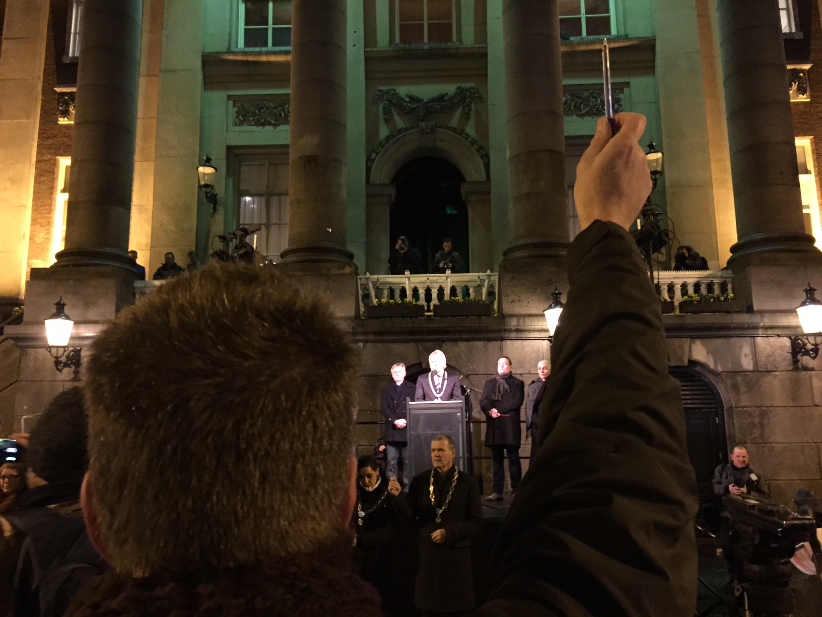 De bijeenkomst werd afgesloten met een indrukwekkende minuut stilte en het roepen van de woorden: "Je suis Charlie!"