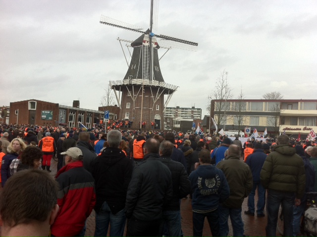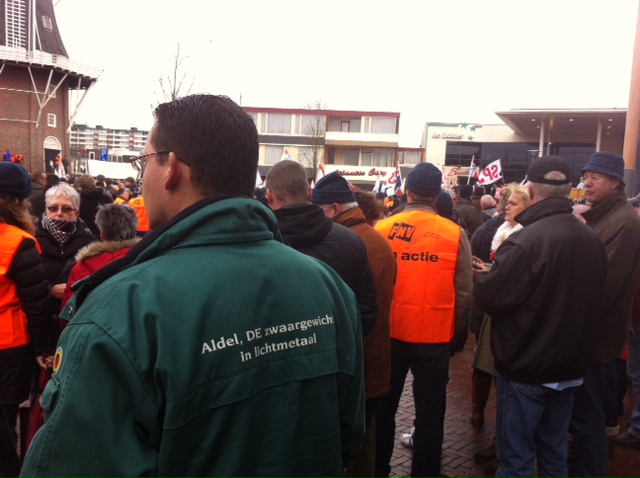 De demonstranten vinden dat de Amerikaanse aandeelhouder van Aldel en minister Henk Kamp van Economische Zaken te weinig hebben gedaan om Aldel overeind te houden. Volgens FNV-voorzitter Ton Heerts, die de demonstranten toesprak, gaat het ook niet alleen om de honderden banen die bij Aldel verloren gaan. ,,Ze halen hier met het aardgas de welvaart uit de grond en breken tegelijk de werkgelegenheid af. Dat moet stoppen. Den Haag moet solidair zijn met Groningen”, zei hij.