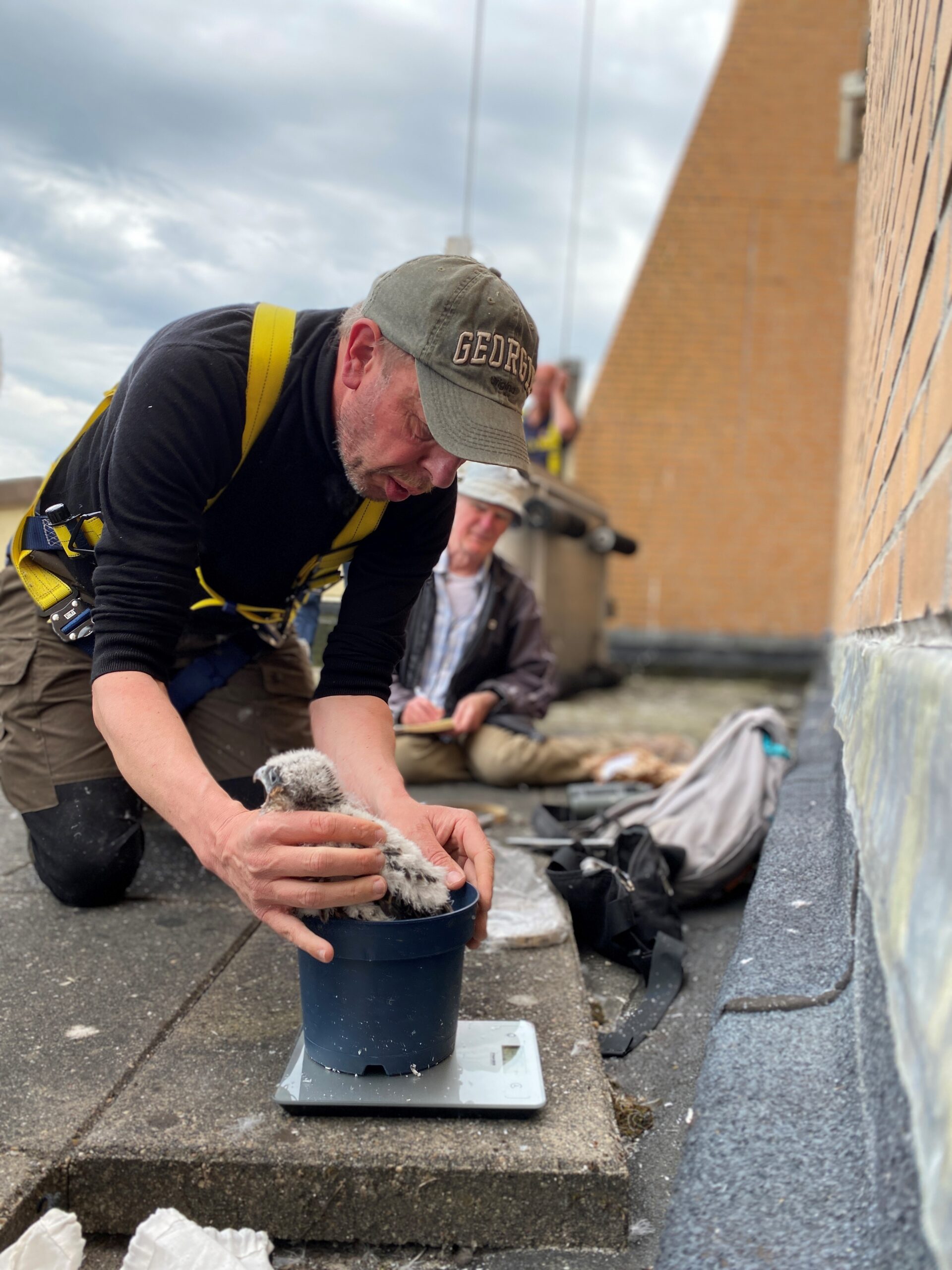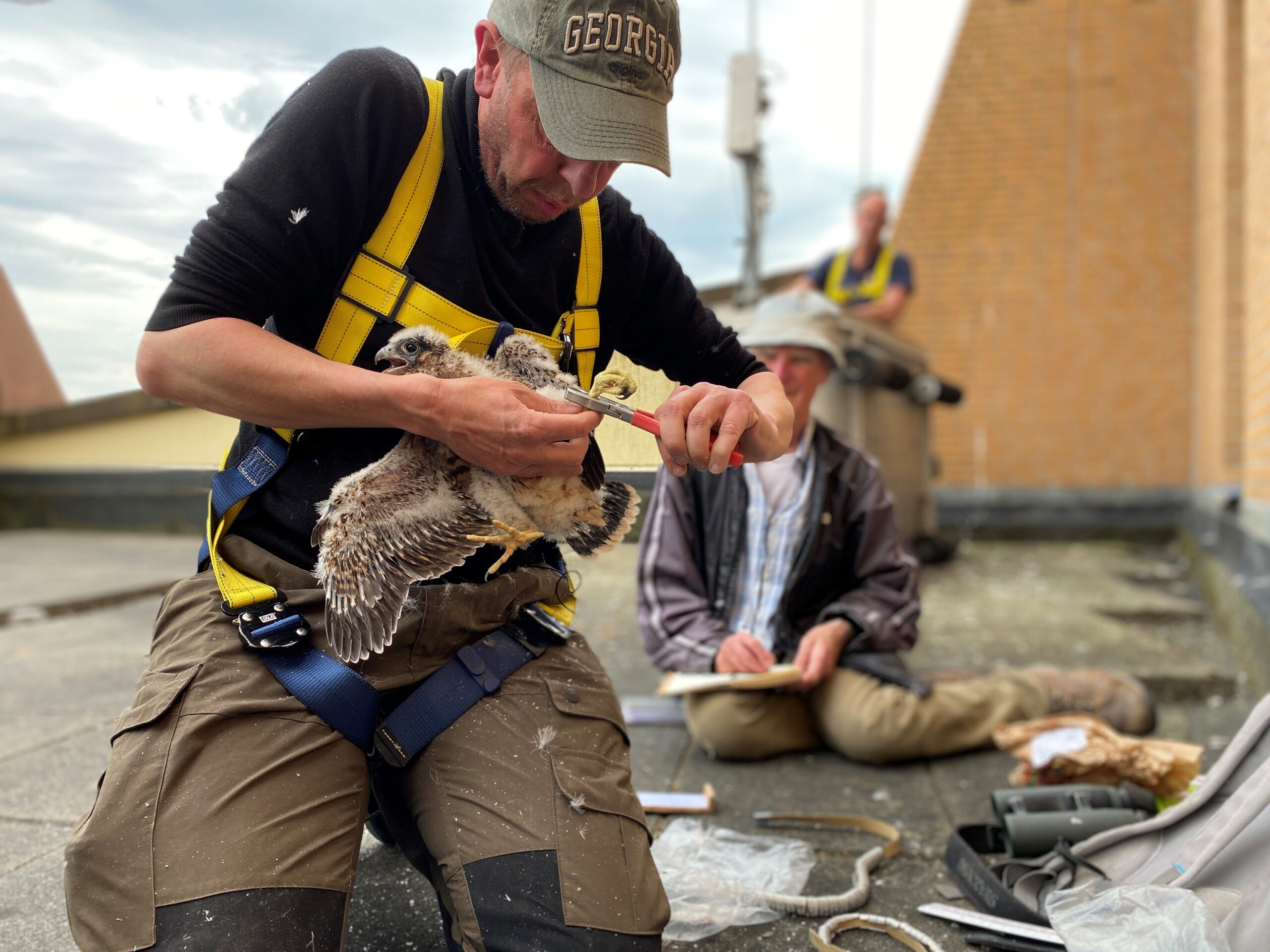 Volgens de deskundigen zijn vogels tussen de 20 en 25 dagen oud, zo kon de ringer vaststellen aan de hand van de lengte van de vleugels.