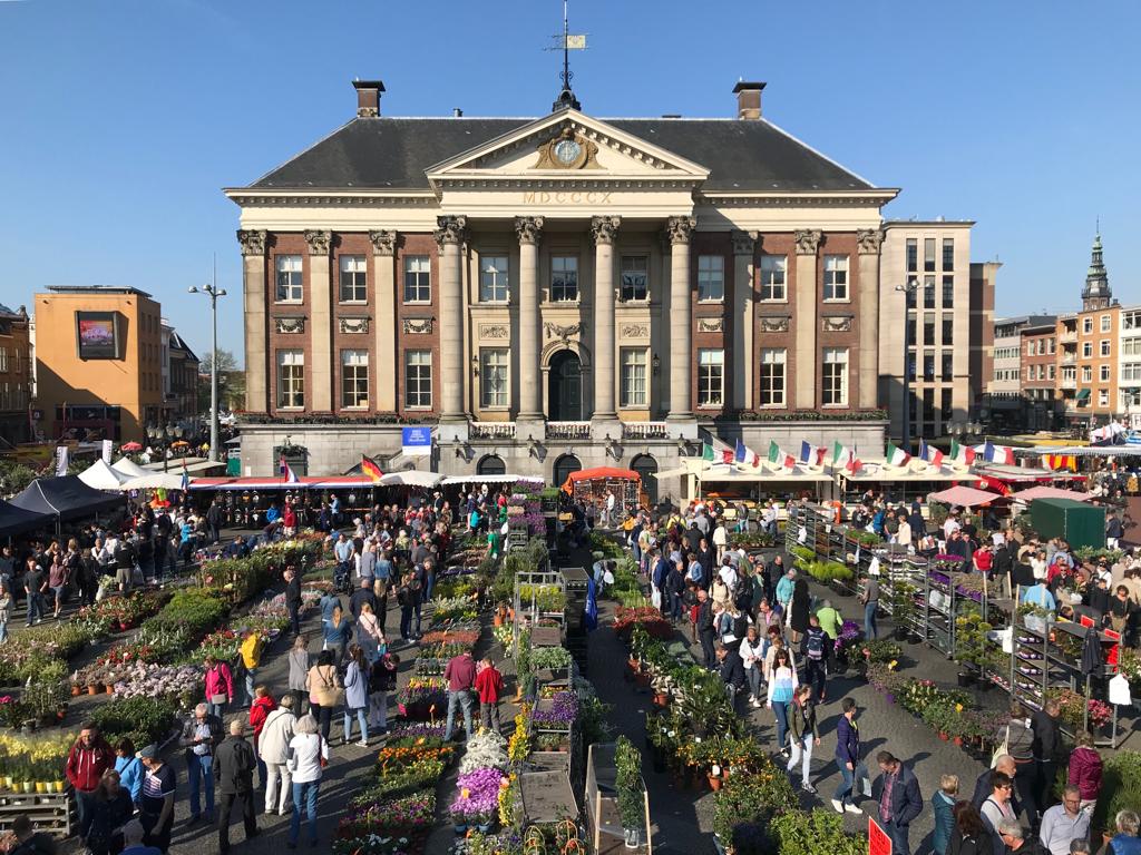 Bij de bloemetjesmarkt bieden ruim honderd marktkooplieden op de Grote Markt, het Waagplein, de Vismarkt, de Oude Ebbingestraat en het A-Kerkhof een grote variëteit verse bloemen en (kamer) planten aan.