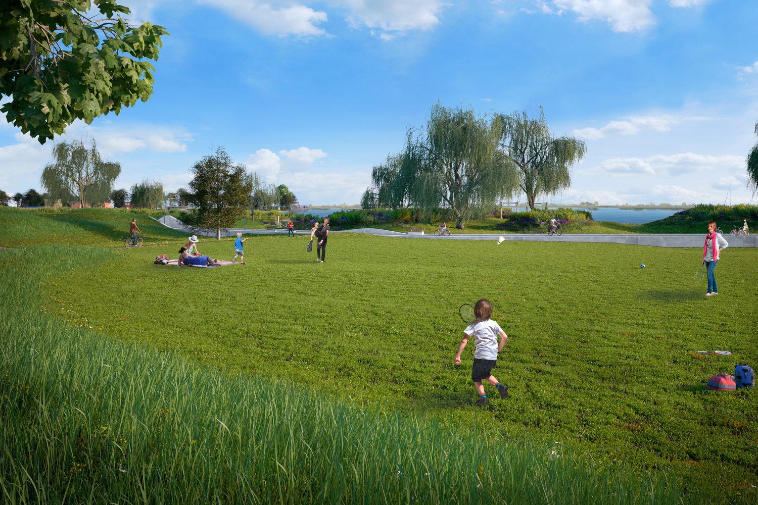 Niet alleen de vorm is uniek maar zeker ook de uitvoering. Het park krijgt een grote biodiversiteit, natuurlijke speelelementen en het heuvellandschap wordt visueel versterkt door een waterpartij en het betonnen fietspad dat als een lint door het landschap loopt. Naast sport en ontspanning is het park ook erg geschikt voor culturele evenementen, ook komt er bij het strand op termijn een horecapaviljoen te staan. De totale oppervlakte van het park is met 10 hectare net zo groot als de drafbaan in het Stadspark. Genoeg ruimte dus.