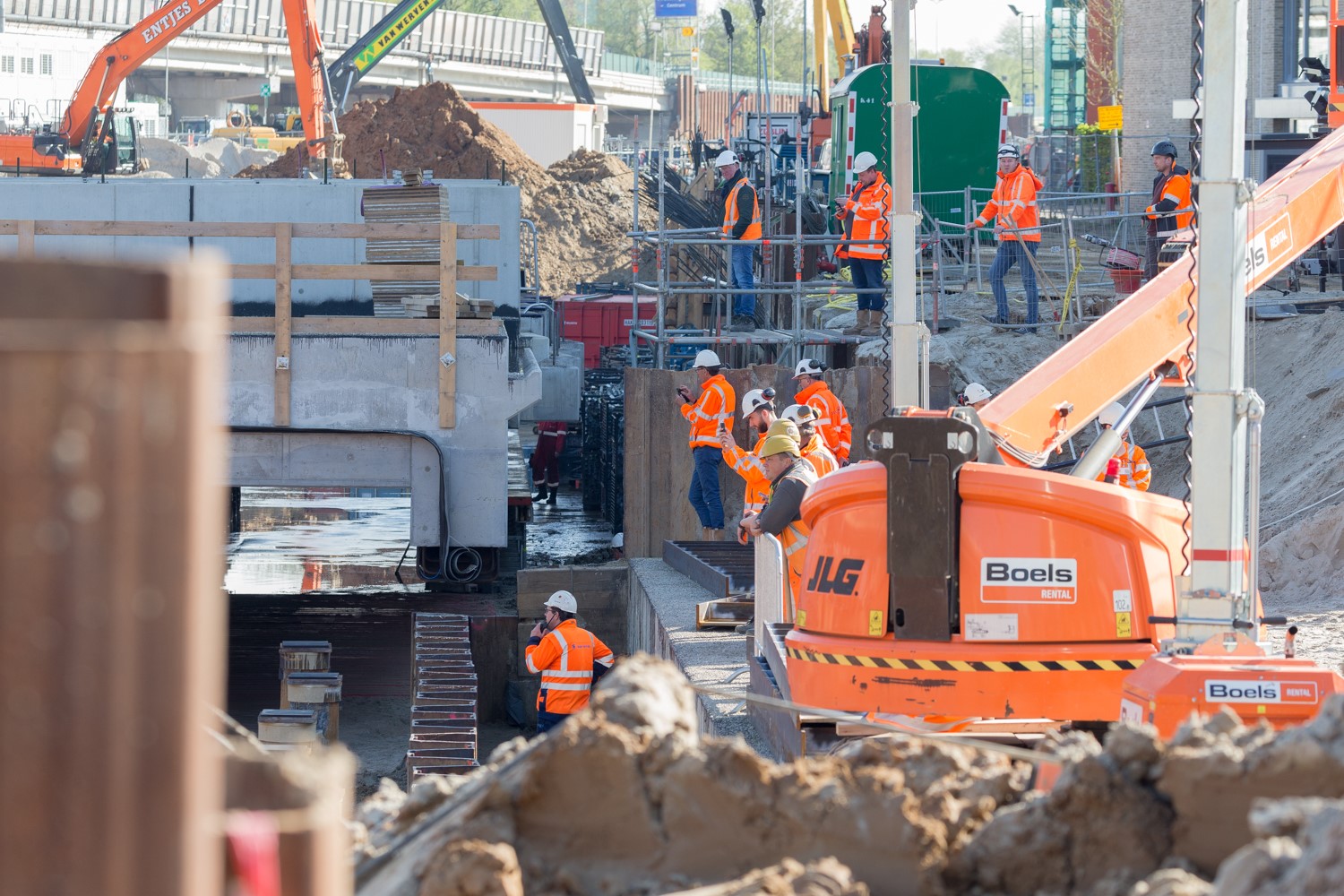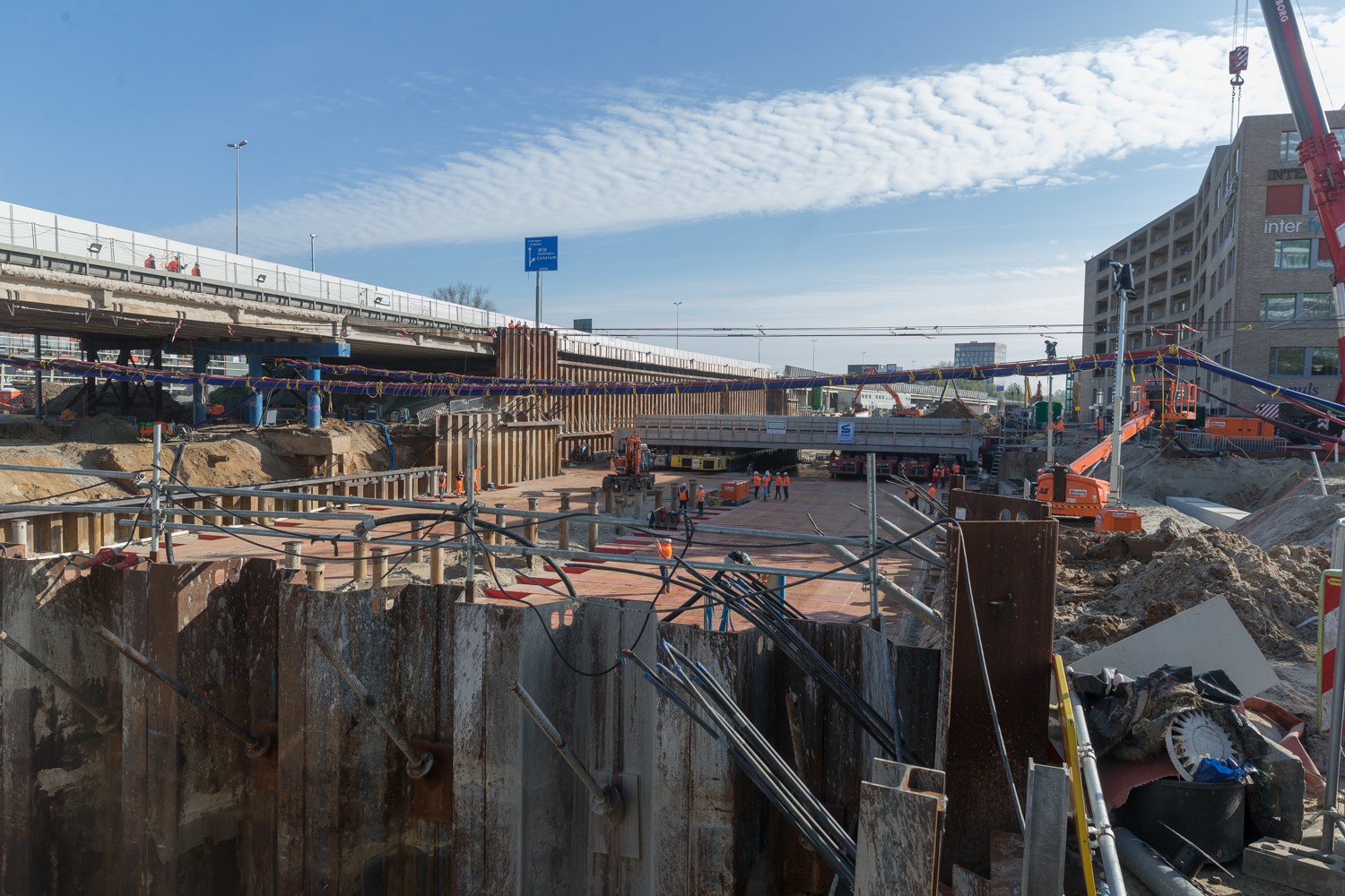 De afgelopen dagen heeft Combinatie Herepoort druk gewerkt om het dek van de bouwplaats naar zijn definitieve plek te rollen. Vanwege de klus ligt het treinverkeer tussen het hoofdstation en het Europapark een week lang stil.