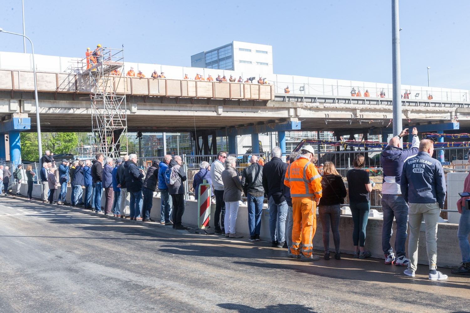 Over het spoor rijden straks de treinen tussen het Hoofdstation en Europapark; auto’s rijden dan onder het spoor door. De werkzaamheden bij De Frontier zijn te volgen via een webcam.