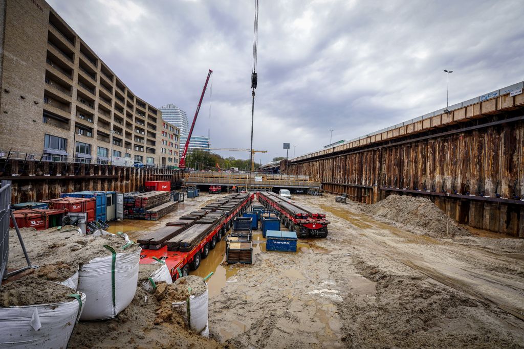 Op zondag begon het uitgraven van de plek waar het spoor lag. Hier werden de stalen palen ingeboord waarop het spoordek komt te liggen. De damwanden tussen de voorbouwlocatie en het spoor werden op de juiste hoogte afgebrand. Zo ontstaat er een rijweg voor de voertuigen waarmee het spoordek naar zijn plek wordt gereden. Op de rijweg wordt steviger zand aangebracht, waarop dikke schotten van hout en dikke metalen schotten worden geplaatst. Ook moet een oud riool en waterleiding worden weggehaald.