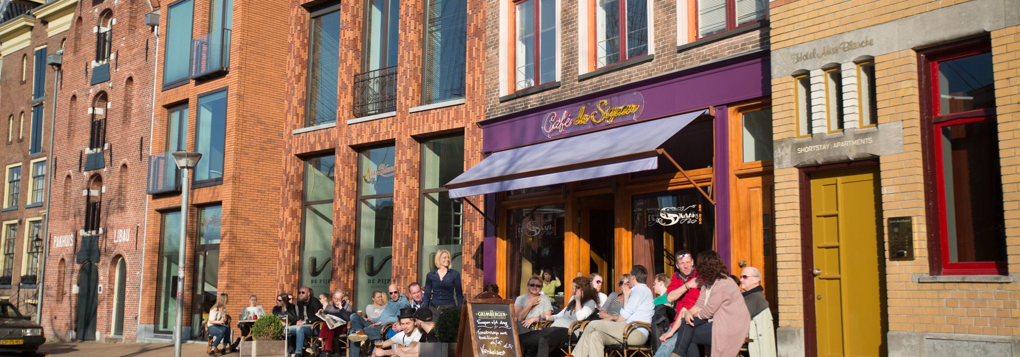 Een terras op een van de meest schilderachtige plekken van Groningen: de Hoge der A. Vanaf het terras heb je uitzicht op de oude panden en de historische zeilschepen die in de diepenring liggen afgemeerd, en waar ’s zomers het ene na het andere bootje voorbij komt. Helemaal wanneer de schemering invalt en de Hoge Der A en zijn schepen feeëriek verlicht worden, is het genieten geblazen in dit oude stukje Groningse binnenstad.