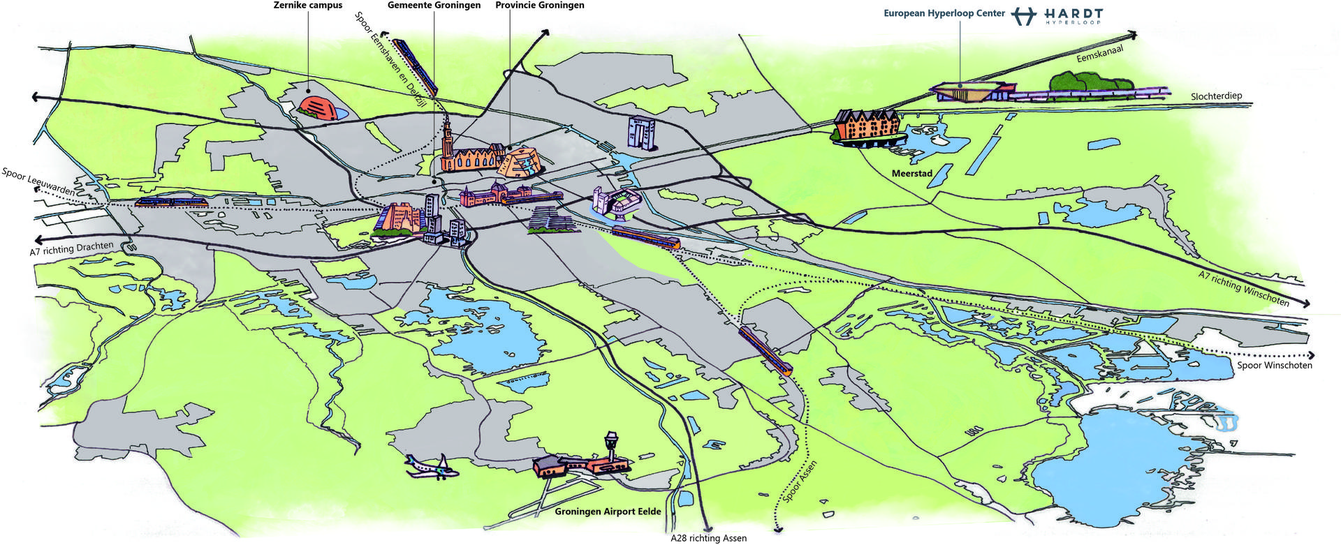 Hardt Hyperloop wacht een warm bad in hive.mobility, het innovatiecentrum in Groningen waar kennisinstellingen, bedrijven en overheden kennis en expertise delen op het gebied van duurzame en slimme mobiliteit. De hyperloop is een veelbelovende transporttechnologie die sneller en energiezuiniger is dan het vliegtuig en de hogesnelheidstrein. Onderzoek uitgevoerd in het Europees Hyperloop Center moet uitwijzen in hoeverre de hyperloop een realistisch alternatief is voor korte-afstandsvluchten. De provincie en gemeente doen al veel op het gebied van slimme en groene mobiliteit, zoals waterstoftreinen en bussen, testen met zelfrijdende treinen en de realisatie van reishubs en laadpalen voor elektrisch vervoer. Het Europese onderzoekcentrum voor hyperlooptechnologie past daar goed bij.
