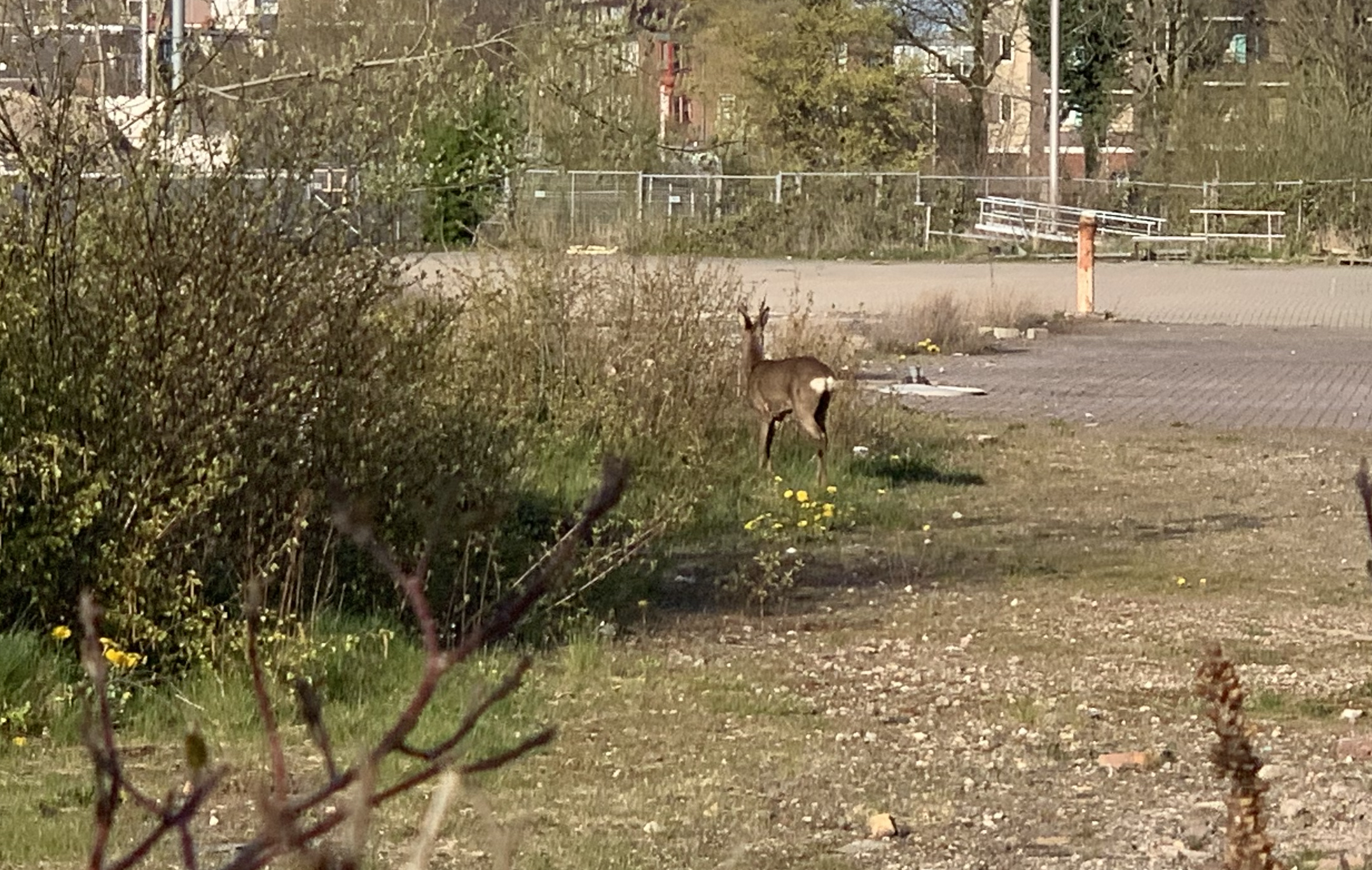Spelende kinderen wisten vanmiddag het reetje op de foto vast te leggen. Hoe lang het dier al in de stad rond loopt, is niet bekend. “Maar dat hij hier niet thuis hoort, is zeker. Dit veroorzaakt een hoop stress bij zo’n dier.”