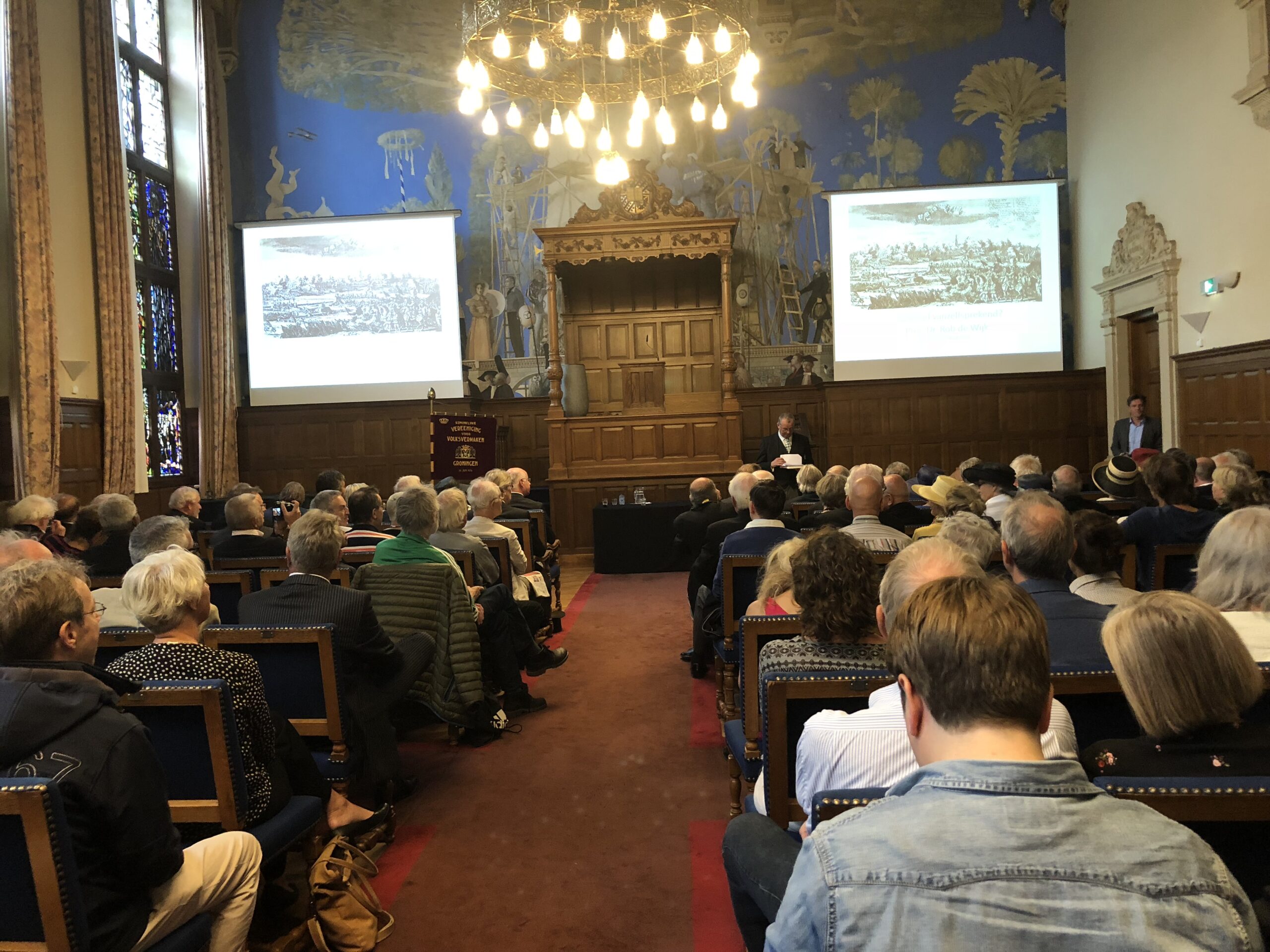 De lezing in de aula werd zeer goed bezocht. Traditiegetrouw waren er ook delegaties van de steden Leiden en Alkmaar, waar ze net als in Groningen jaarlijks herdenkingen houden van belegeringen.