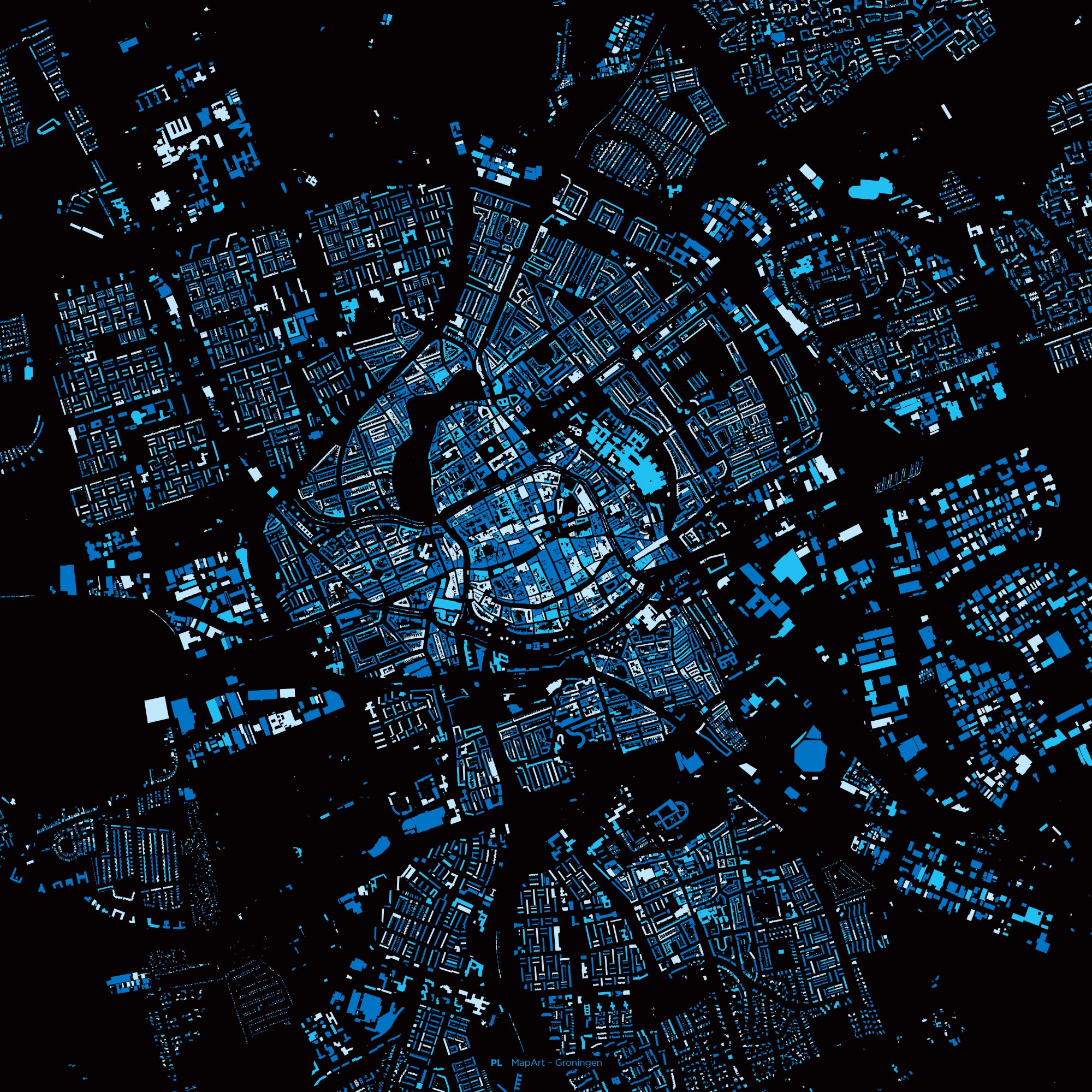“Een paar maanden geleden vroeg iemand me op Twitter of ik iets kon maken voor aan de muur. Iets unieks, iets van Groningen en iets moois. Wat ik heb gemaakt is iets waar je uren naar kunt kijken en turen. Een kaart van Groningen en inmiddels een paar andere steden.”