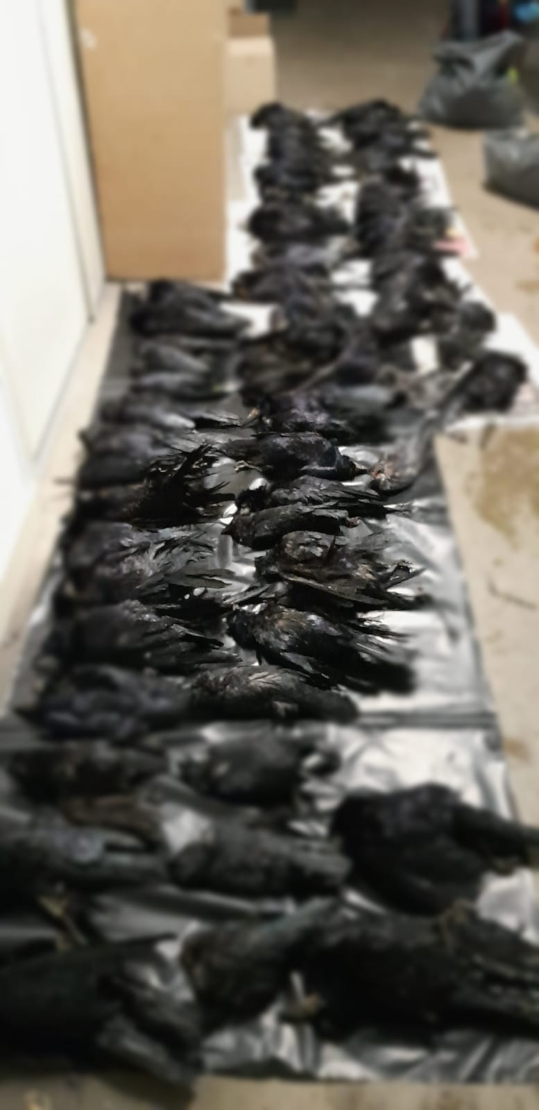 Eerst werden alle levende vogels gered, vervolgens werden de dode opgeraapt. “De aangeslagen collega's kwamen retour met zakken met daarin 87 dode vogels die ze van de grond hadden moeten rapen”, aldus de Dierenambulance.