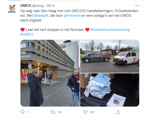 Eind december kondigde de minister van VWS aan dat de zorg voor kinderhartchirurgie geconcentreerd moet worden op twee of drie locaties, om de kwaliteit van de specialistische zorg te waarborgen. Dit tot verbazing en ongenoegen van het UMCG. Het weghalen van de zorg uit het ziekenhuis is volgens experts niet alleen zonde van de jarenlange opgebouwde ervaring en expertise, het heeft ook veel ongewenste gevolgen voor de (acute) kinderzorg en de zorg voor volwassenen in Noord-Nederland. In het besluit van de minister is volgens het ziekenhuis geen rekening gehouden met goede regionale spreiding van complexe kindergeneeskunde.