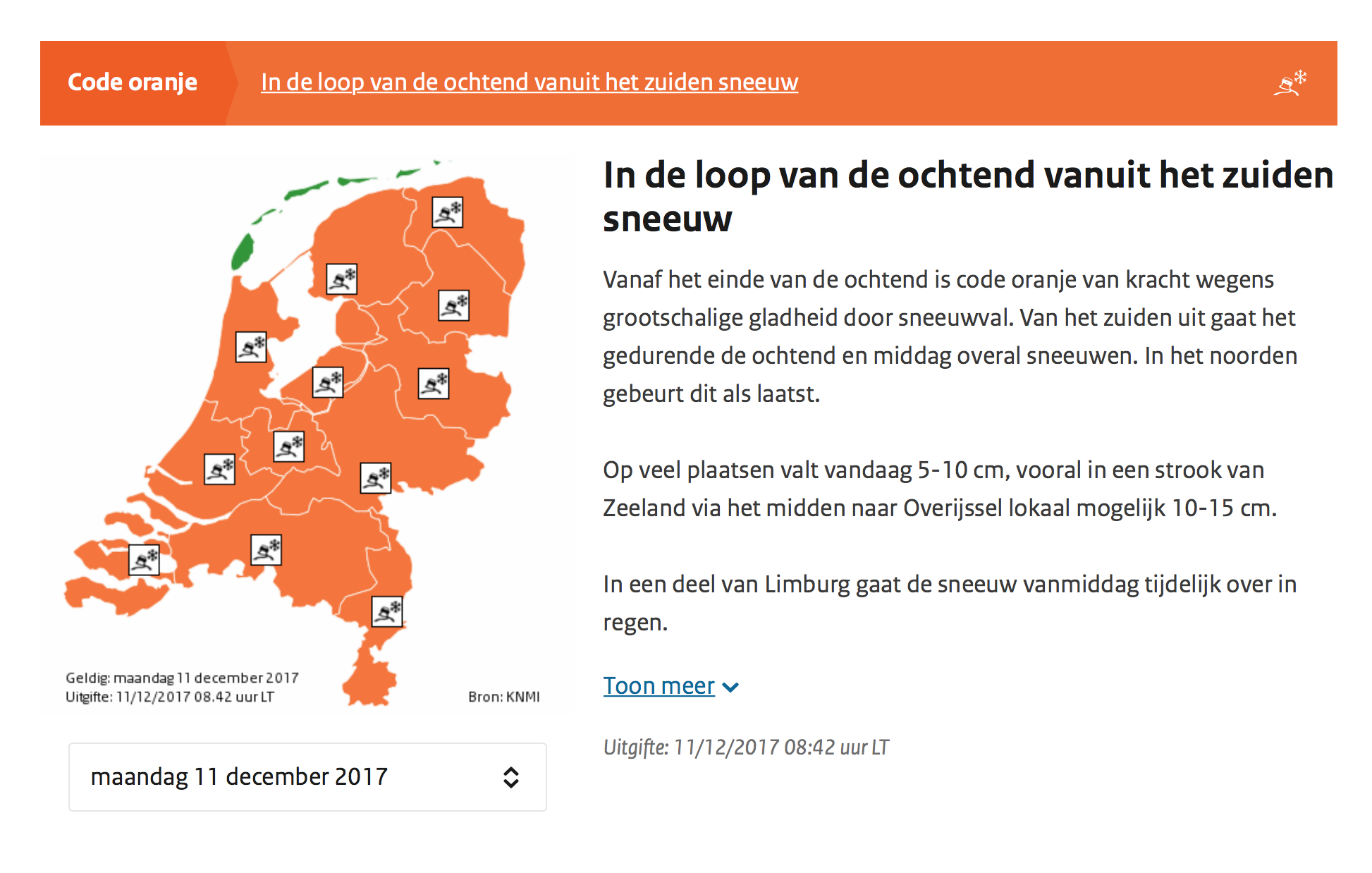 De sneeuw trekt maandag vanuit het zuiden het land binnen. Mogelijk valt er weer zo’n tien centimeter sneeuw. Vooral het autoverkeer kan daar flink veel last van krijgen.