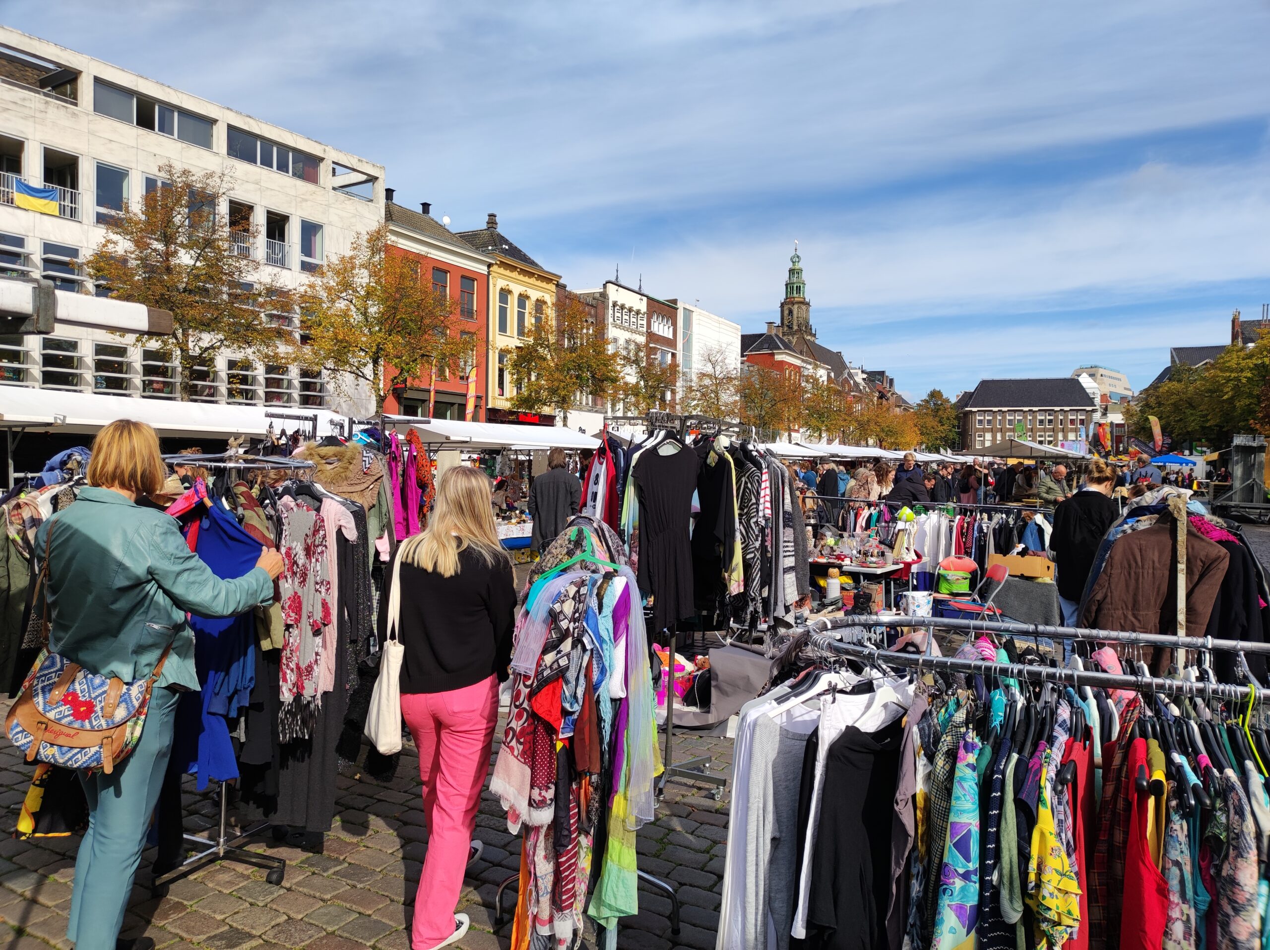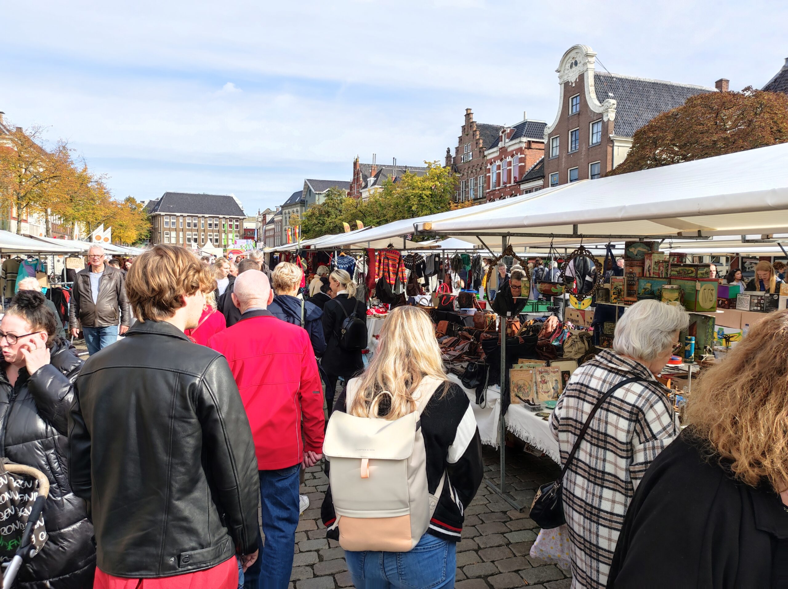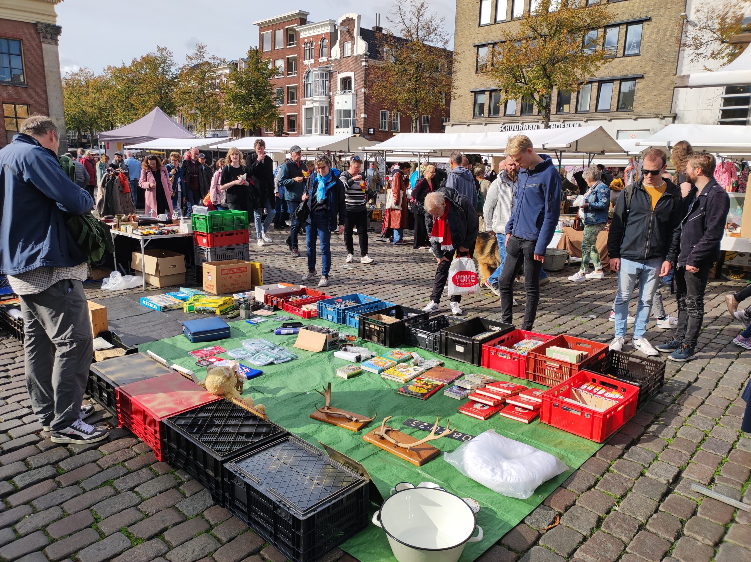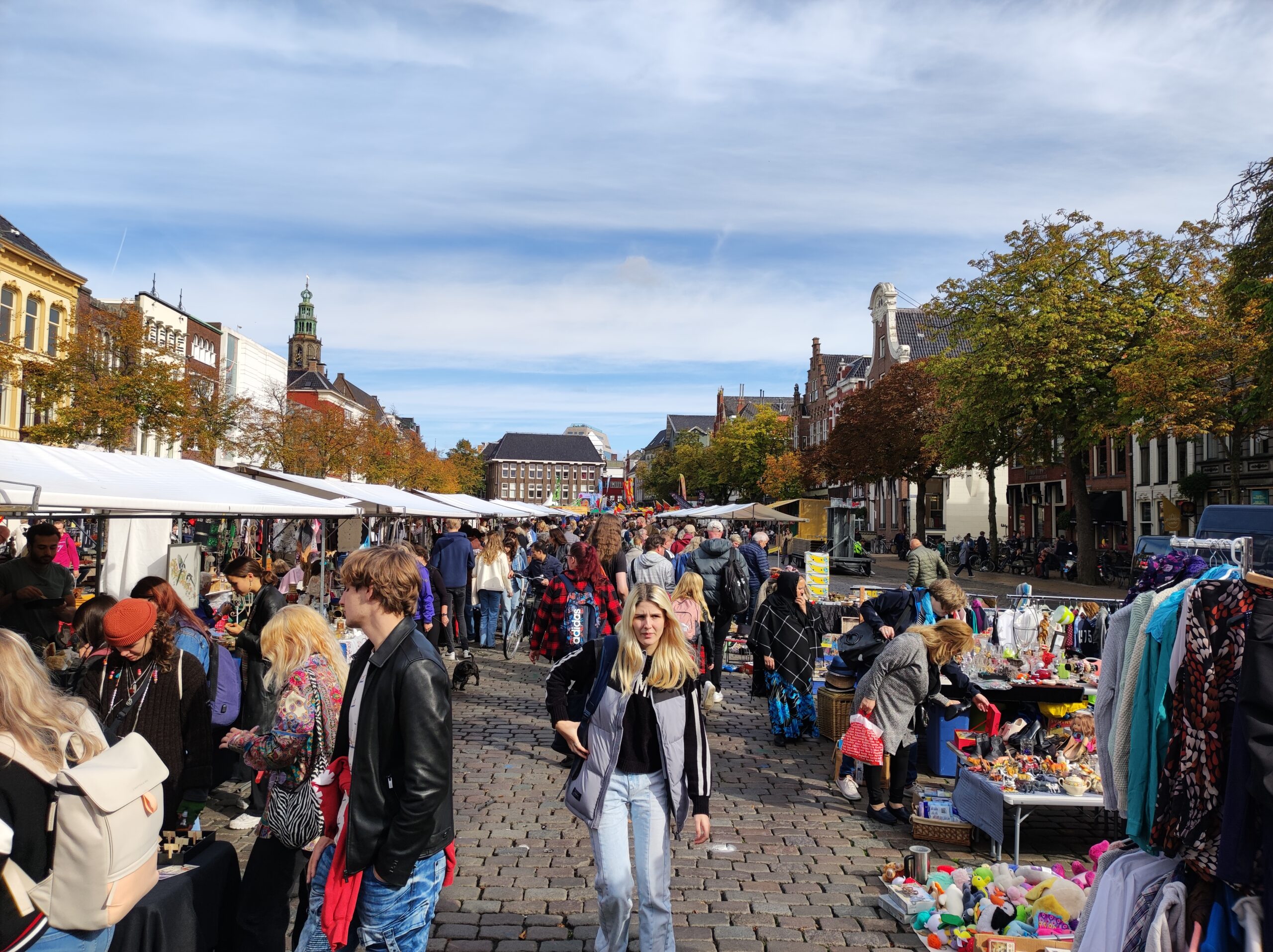 Dat is duidelijk zichtbaar: de binnenstad van Groningen werd druk bezocht op maandag. Een warm herfstzonnetje scheen over de hoofden van de Groningers en Duitsers in de stad. Het maakte de omstandigheden ideaal om over de vlooienmarkt te struinen, op zoek naar mooie aanwinsten.