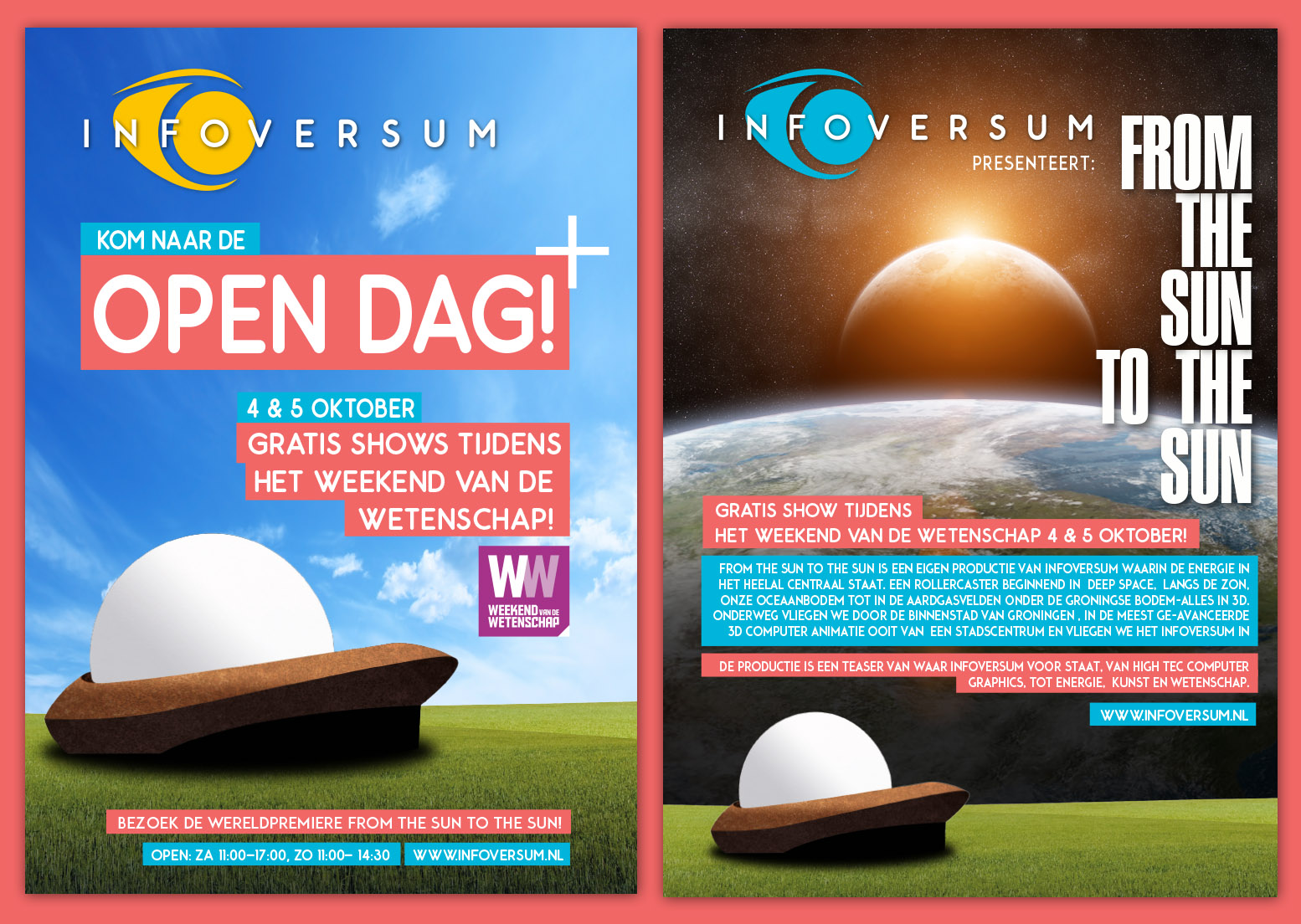 In het Infoversum is beide dagen de wereldpremière van de eerste Groningse 3D filmproductie. Het betreft de film ‘From the Sun to the Sun’: een productie waarin de energie in het heelal centraal staat, met zeer bijzondere beelden van de binnenstad van Groningen, in de meest geavanceerde 3D computer animatie die ooit van een stadscentrum werd gemaakt.