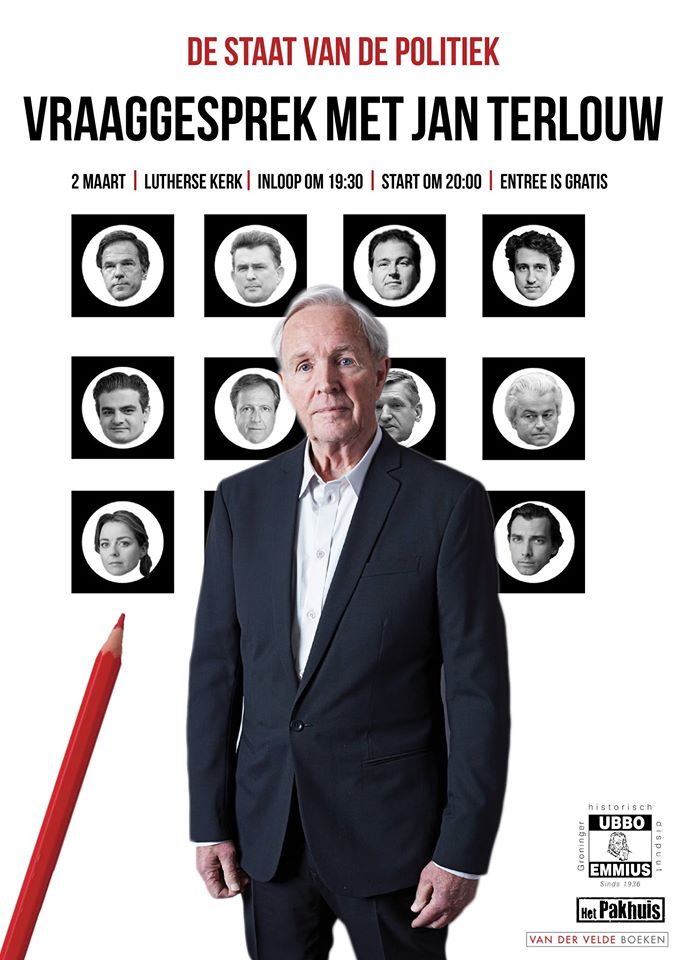 Terlouw zal in de Lutherse Kerk een korte lezing geven alvorens in gesprek te gaan met de emeritus hoogleraar geschiedenis en voormalig rector magnificus van de Rijksuniversiteit Groningen Doeko Bosscher. De inloop is om 19:30, de lezing begint om 20:00 en is gratis toegankelijk voor iedereen.